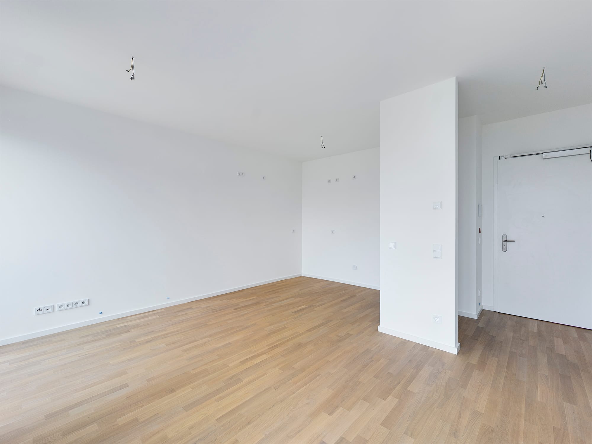 An optimal apartment for anyone who wants to live in one of the most exciting cities. The apartment convinces with open spaces, including a fully equipped kitchen, high ceilings and parquet flooring. In addition, the apartment offers high-quality materials, underfloor heating and a video intercom system.