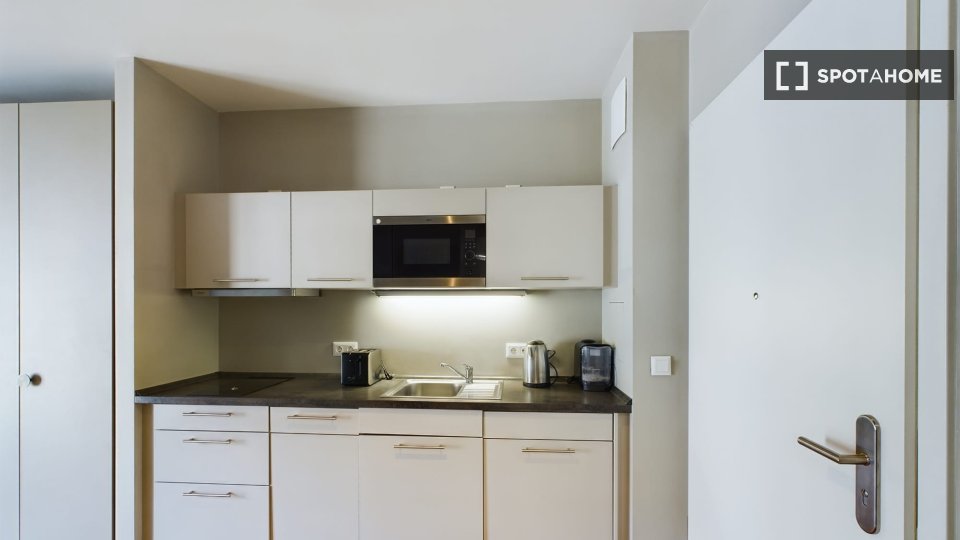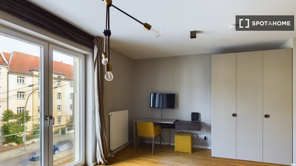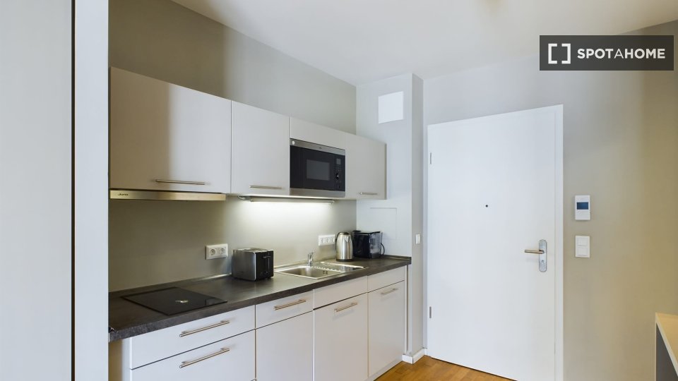 The studios offer all the advantages of modern living. The elevator takes you comfortably to the 6th floor. All apartments are equipped with a high-quality real wood parquet floor (natural oak), the bathrooms with shower bath in structured cream colour. Depending on the orientation, the apartments have water views of the Spree and a balcony. Electric shutters have been installed on the ground floor.