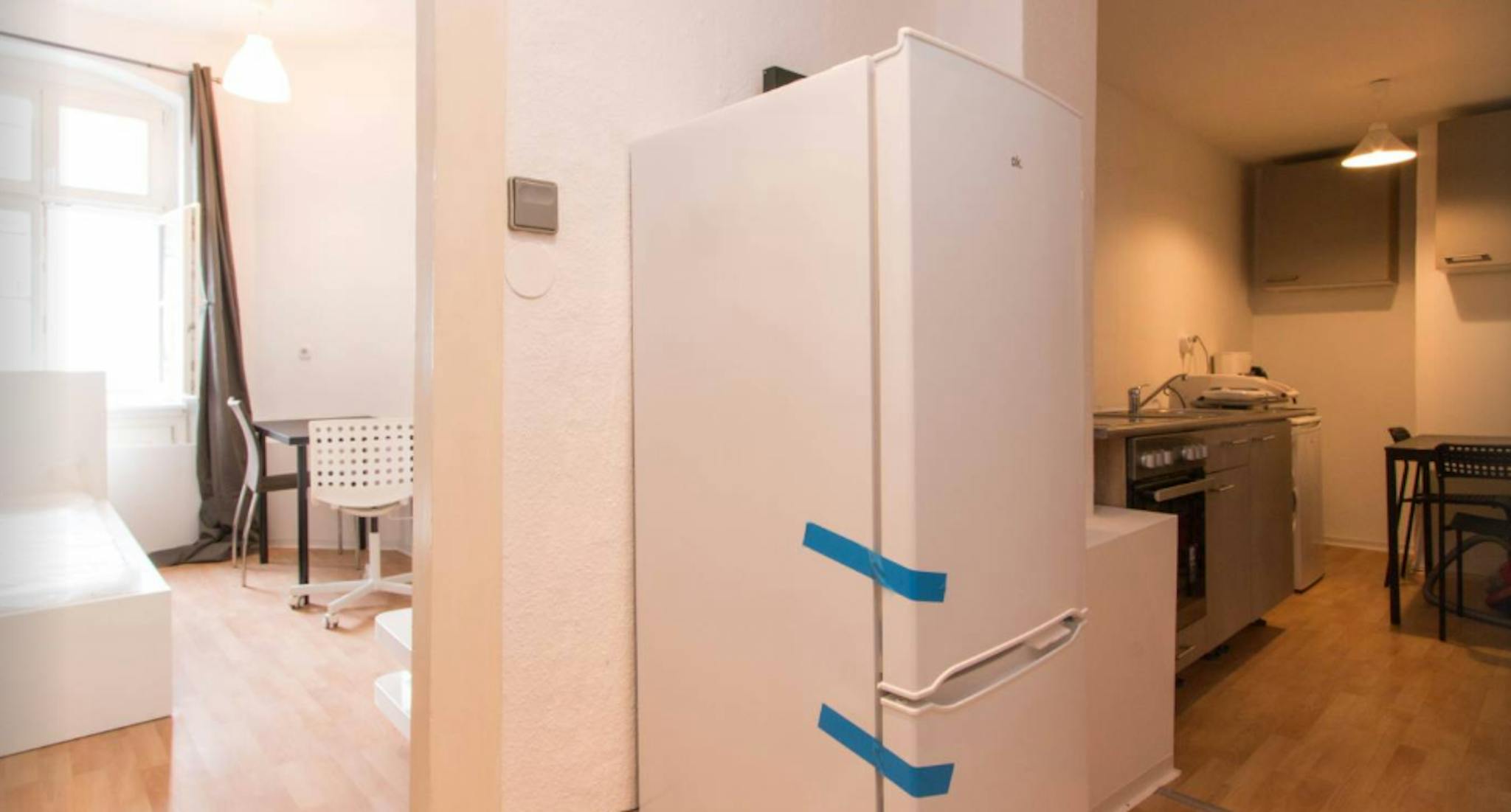 The room is fully furnished. This includes the following pieces of furniture: - bed, desk, office chair, wardrobe, lamp , curtains The room is part of a 4-bedroom renovated apartment (60m2)