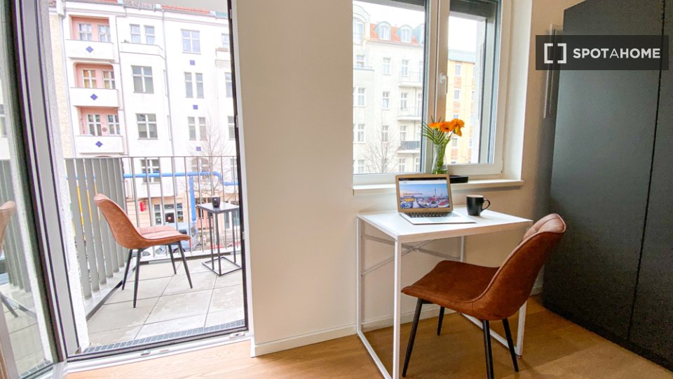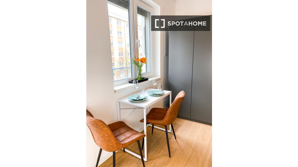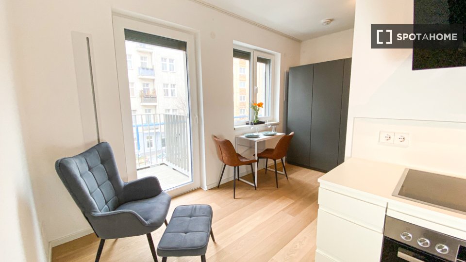 Pets not allowedNot allowedThis cozy and furnished studio is now available for rent in Berlin. The property includes a well-equipped kitchen with a dishwasher and oven, a private washing machine, an underfloor heating system, and a natural gas water heating system. Additionally, the studio features a balcony for outdoor relaxation. All utility bills, including electricity, water, gas, wifi, and heating, are included in the rent.