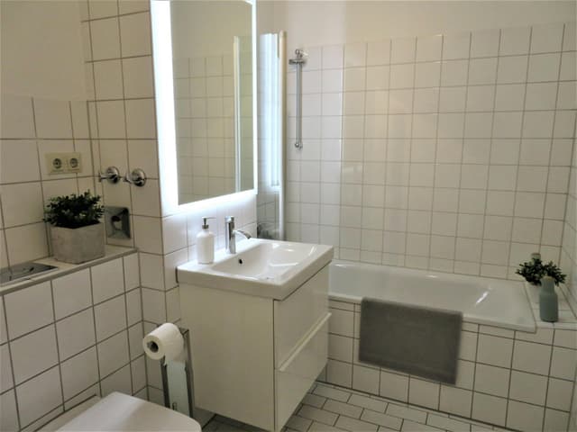 In one of the most sought after locations in Berlin, the apartment is located in a quiet and green courtyard. The quality of the apartment is its spectacular location around the corner of the famous Bergmannstraße. The area is characterized by neighbourhood shops (Bergmannstraße etc.), cafés, pubs, discos and restaurants. The connection to the public transport network is excellent. Subway and bus stations are nearby.