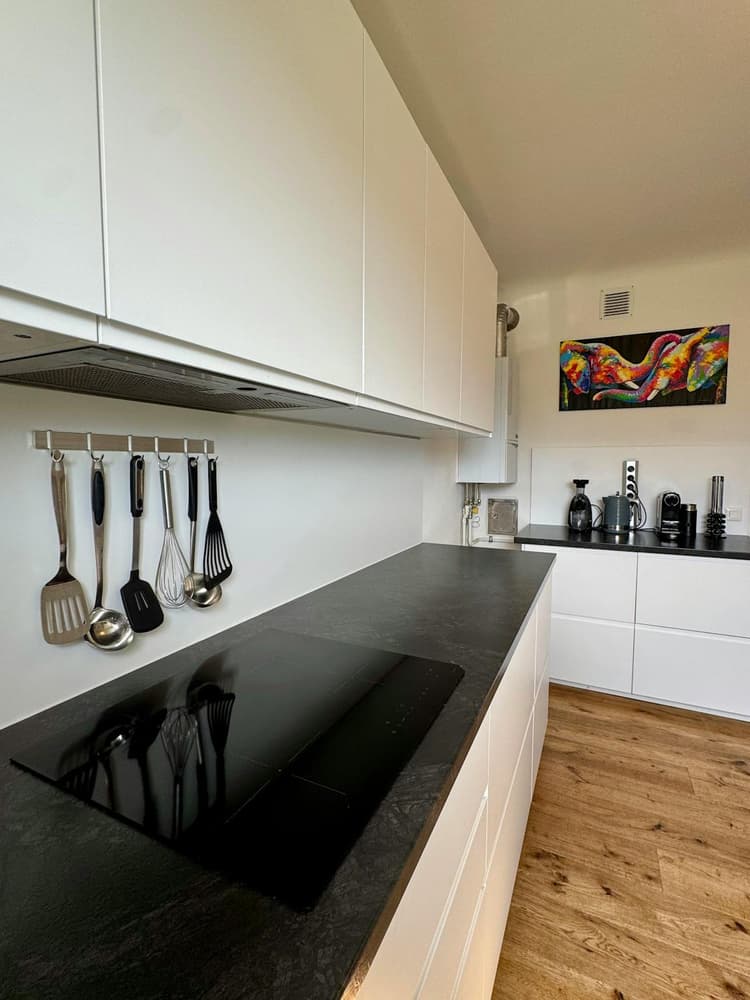 This place is characterized by its beautiful and very stylish design! This sunny property features large window panes that glare natural light into the space, amazing furniture, a fully fitted kitchen for the avid cooks, 2 bedrooms with a comfy bed, which will all contribute to making you feel at home!