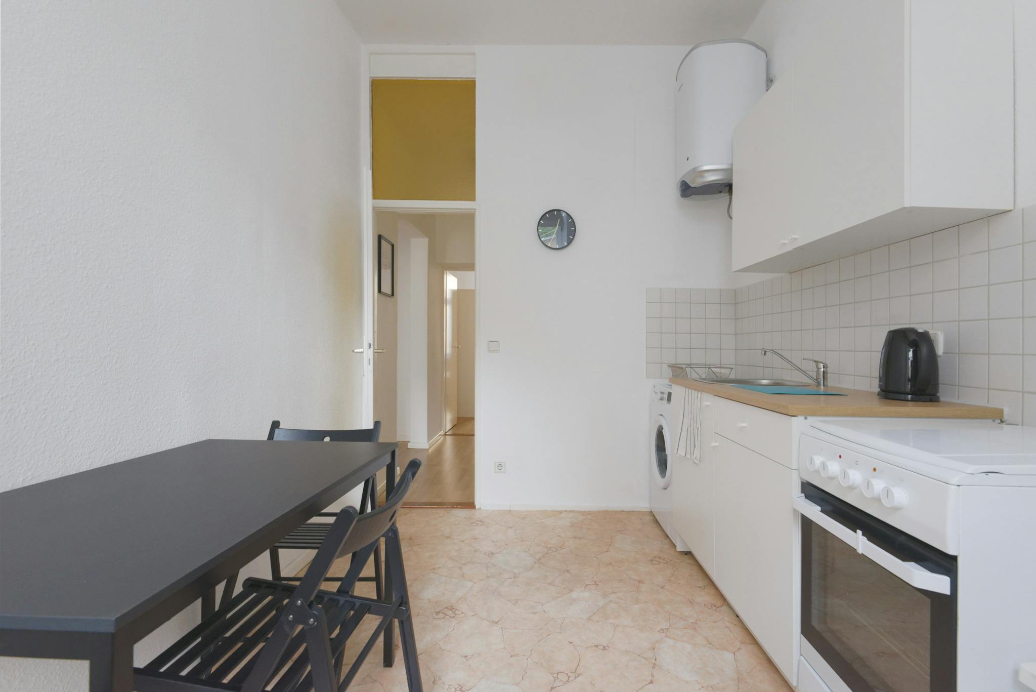 The monthly rent price is all inclusive (rent + heating + water + Internet + GEZ/german TV license fee).