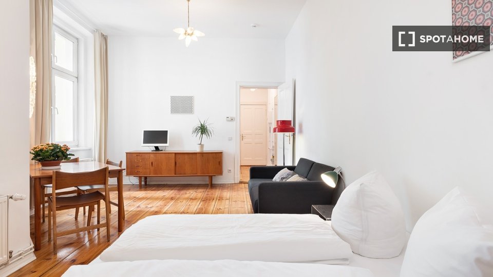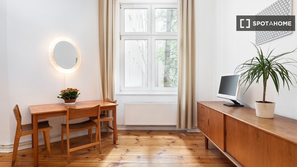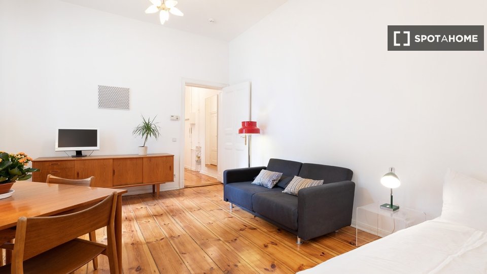 Pets not allowedNot allowedThis cozy and furnished studio in Berlin is perfect for professionals, students, and couples seeking a comfortable living space. It features a private washing machine and a fully equipped kitchen that includes a dishwasher. All bills, including electricity, gas, water, wifi, and heating, are included in the rental price. Rent confidently as all landlords verified by Spotahome undergo a thorough vetting process.