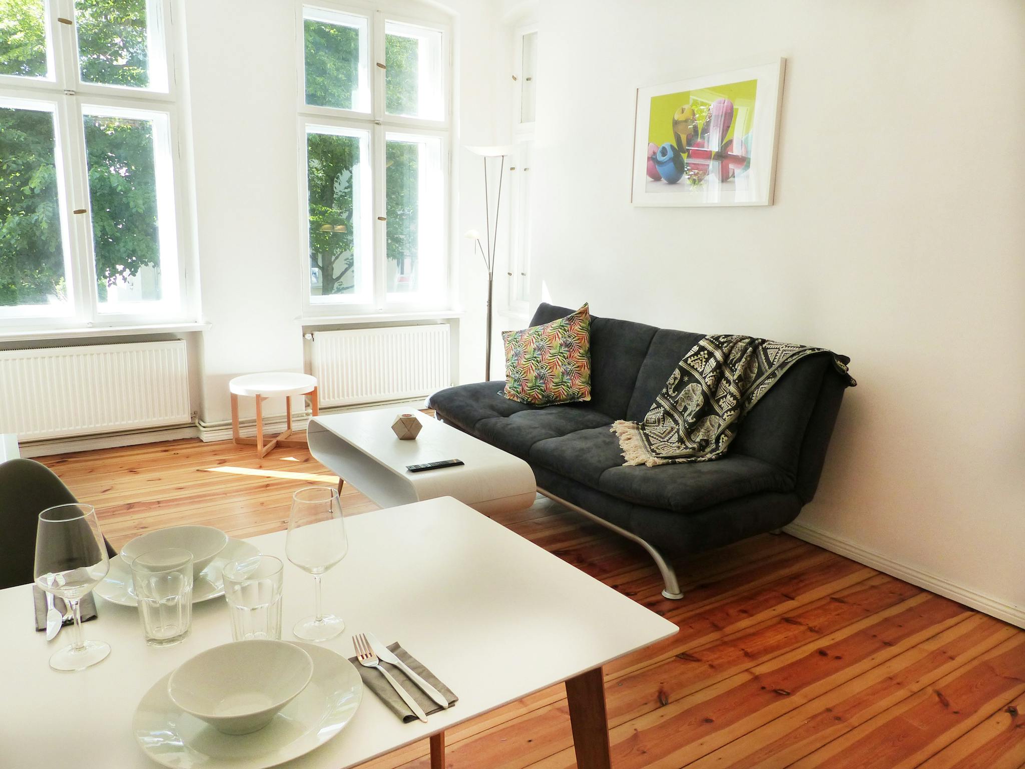 A beautiful flat in an old building with a balcony, high ceilings and floorboards in Weitlingkiez, not far from Rummelsburger Ufer in the green district of Lichtenberg.