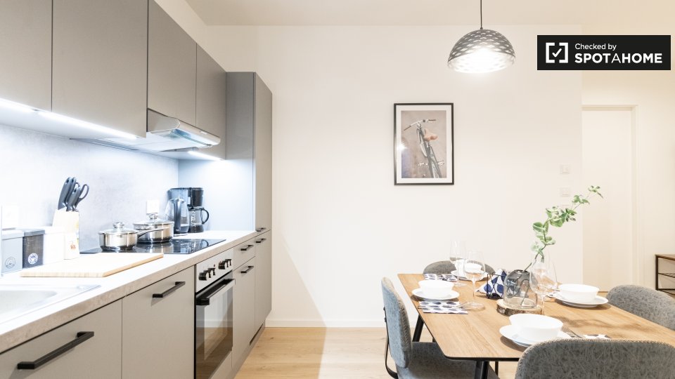 Pets not allowedNot allowedWelcome to this spacious and fully equipped 1-bedroom apartment located in Berlin. This property is perfectly set up for a comfortable stay, offering features such as a furnished setting, an equipped kitchen with oven and dishwasher, a private washing machine, and access to a balcony or terrace. All bills, including electricity, water, gas, and Wi-Fi, are included, ensuring a hassle-free living experience. Couples are welcome, and there are no restrictions on gender or profession. Smoking is permitted on the premises.