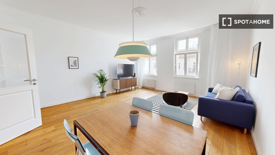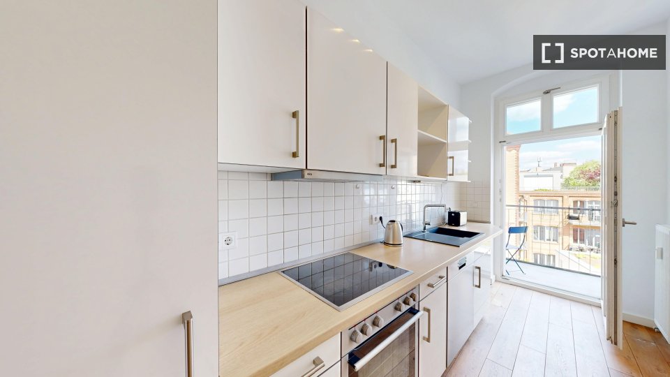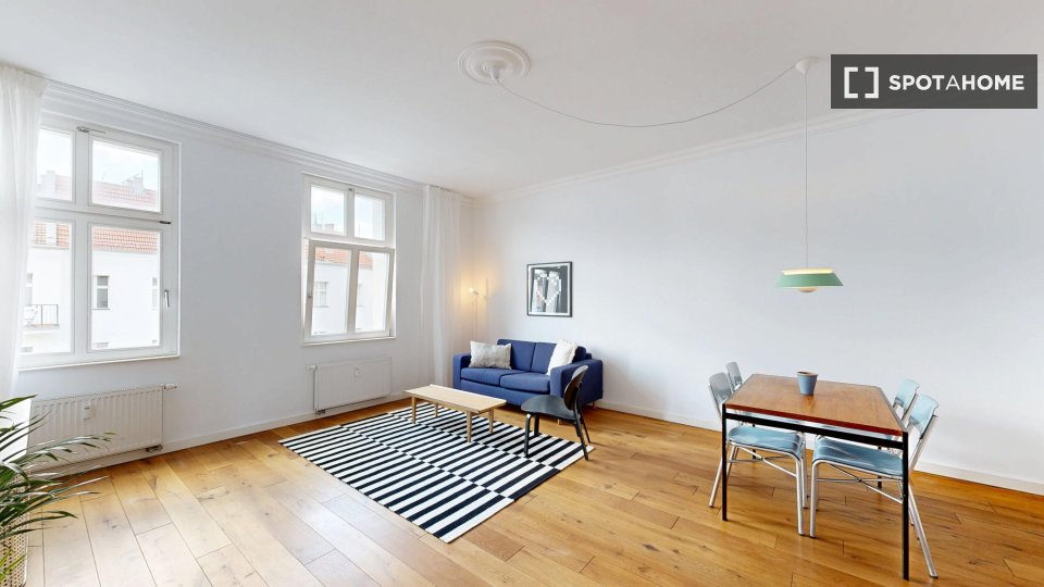 Pets allowedAllowedLooking for a home that combines style and convenience? This 1-bedroom apartment in Berlin offers a furnished space with an equipped kitchen, dishwasher, oven, a balcony, and a private washing machine. Pets and smoking are permitted, making this a welcoming environment suitable for professionals, students, and couples. Furthermore, all bills (electricity, water, gas, and WiFi) are included, ensuring a hassle-free living experience. Landlords are vetted thoroughly by Spotahome to ensure your satisfaction.