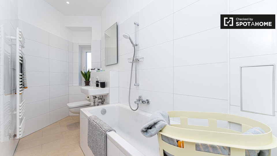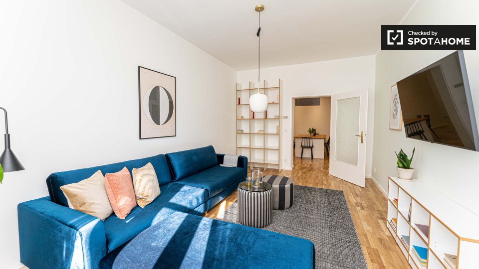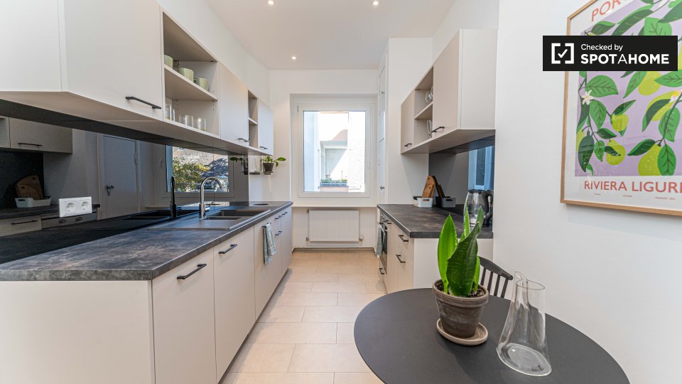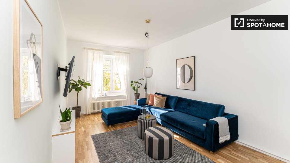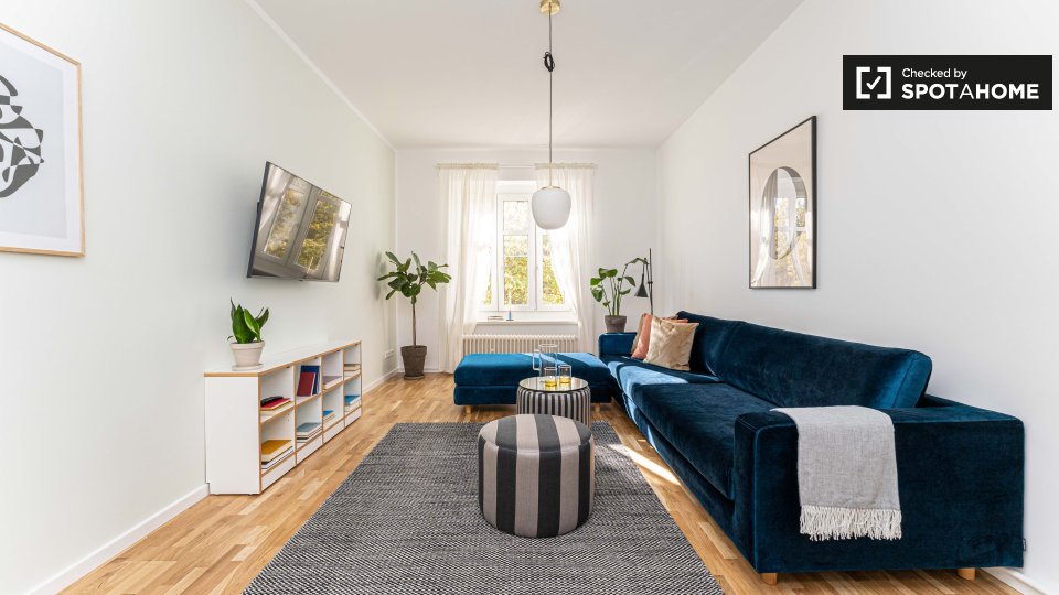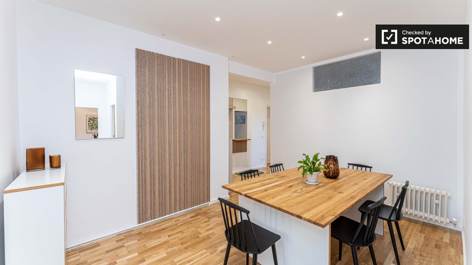 Pets allowedAllowedThis charming 1-bedroom apartment in Berlin is fully furnished and equipped for comfort. The property comes with a private washing machine, a dishwasher, and a TV. Additionally, all utility bills (water, electricity, gas, and WiFi) are included, and the apartment has been personally checked by Spotahome to ensure its quality. Pets are welcome, providing extra convenience.