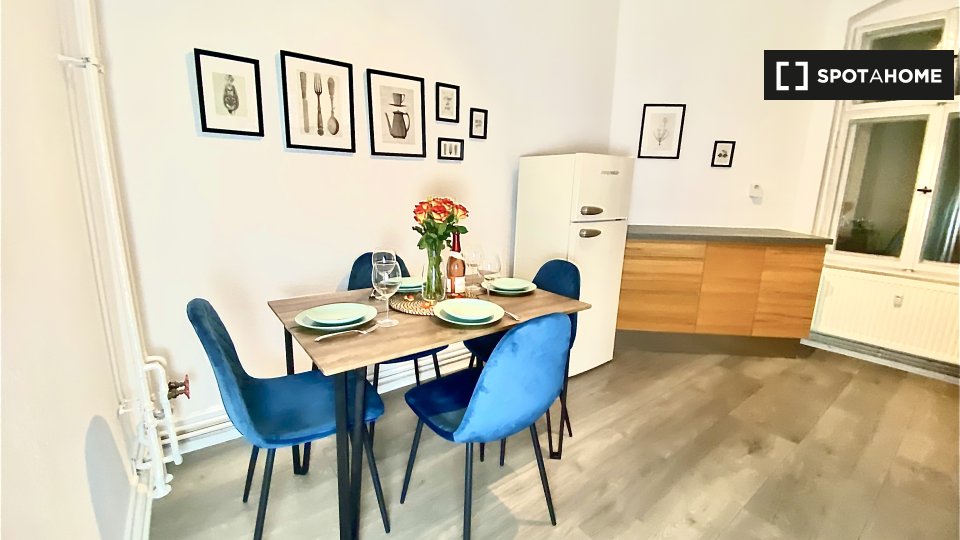 Situated in Berlin, this apartment is in close proximity to notable landmarks. The Schweineschlachthaus für Großbetrieb is nearby, along with various dining options like Döner to go and Pizza und Späti Lieferservice. Discover the vibrant surroundings with diverse cuisine and attractions all within walking distance from the property.