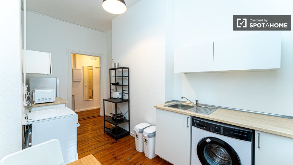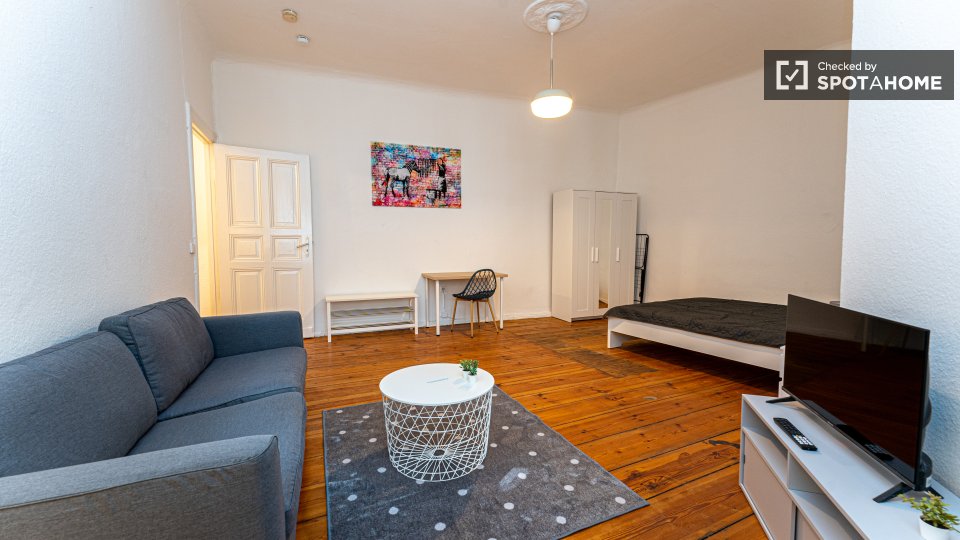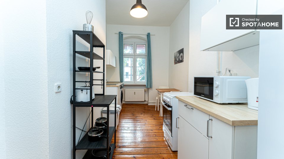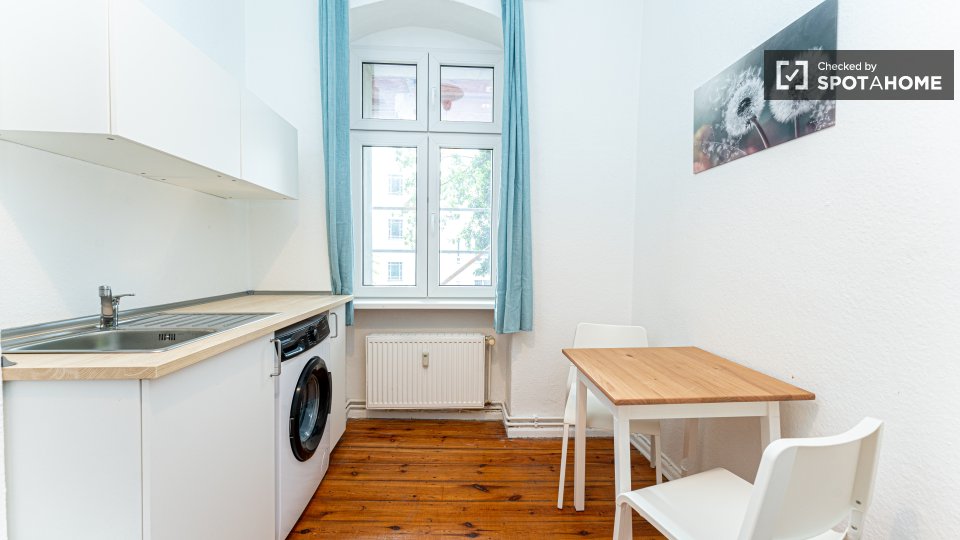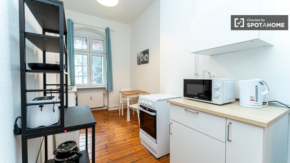 Pets not allowedNot allowedLooking for a cozy and comfortable studio to call home in Berlin? This exterior studio is fully furnished and equipped with modern amenities. It features a private washing machine, an oven, a TV, and a fully equipped kitchen. Spotahome has checked and verified this property, ensuring that it meets our high standards of quality and reliability.