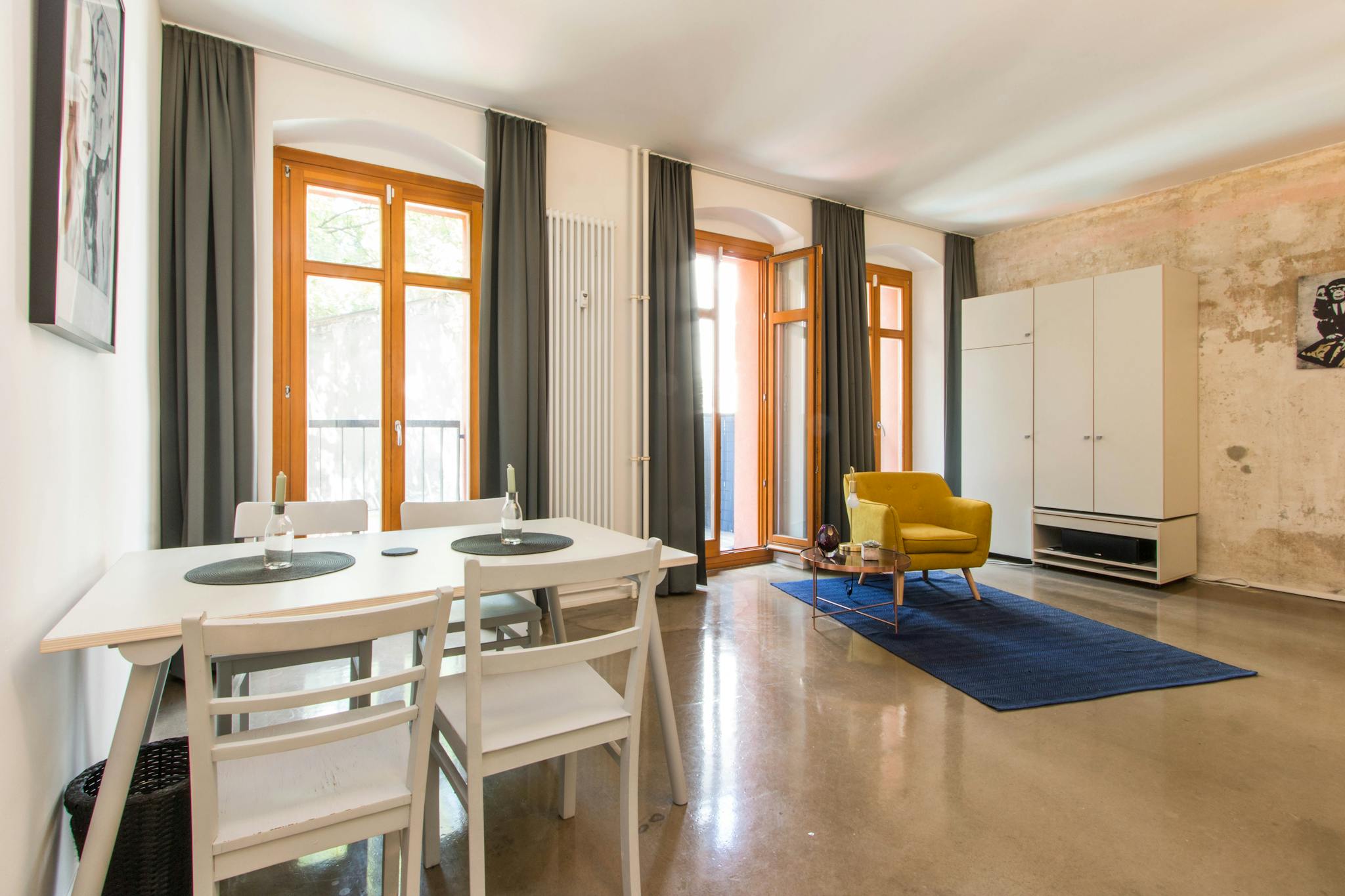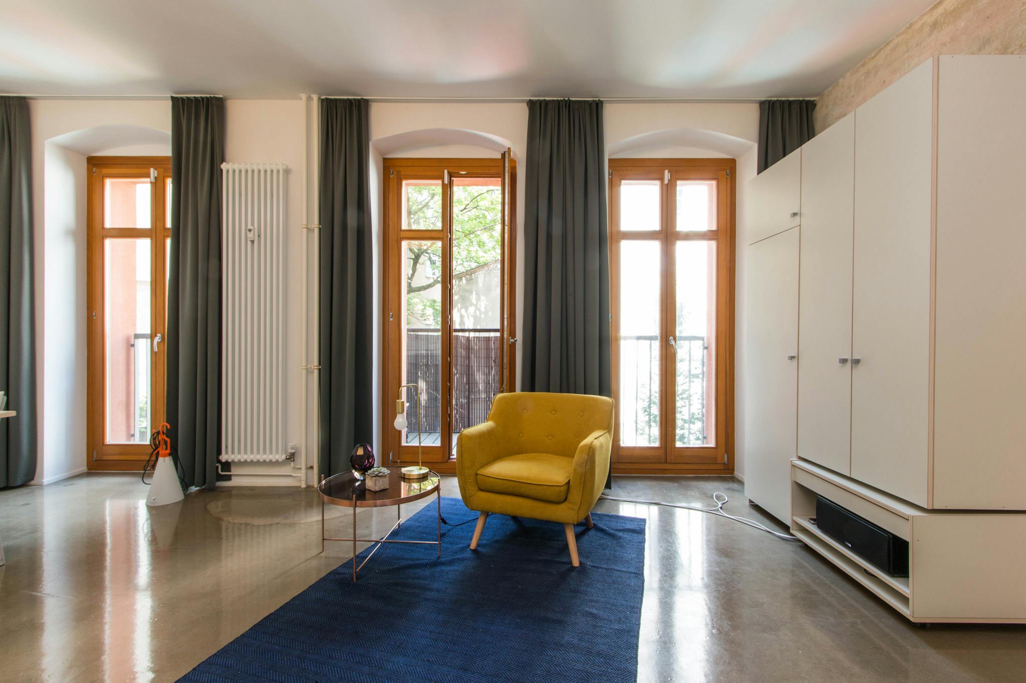 Non-SmokingNot allowedMove into a fully furnished studio inside a renovated 1900s building in vibrant Friedrichshain. All-inclusive rent, smart tech, shared lounges and a leafy courtyard garden — just bring your suitcase.
