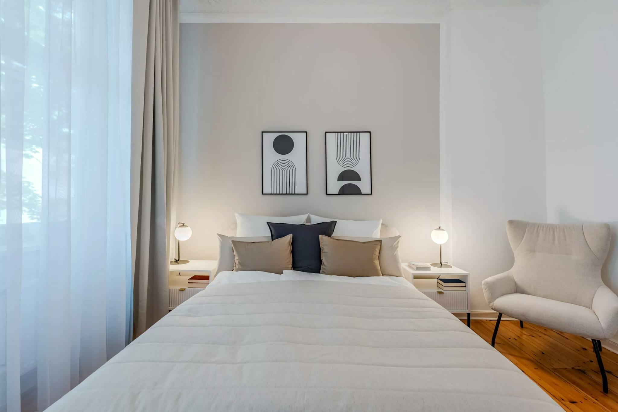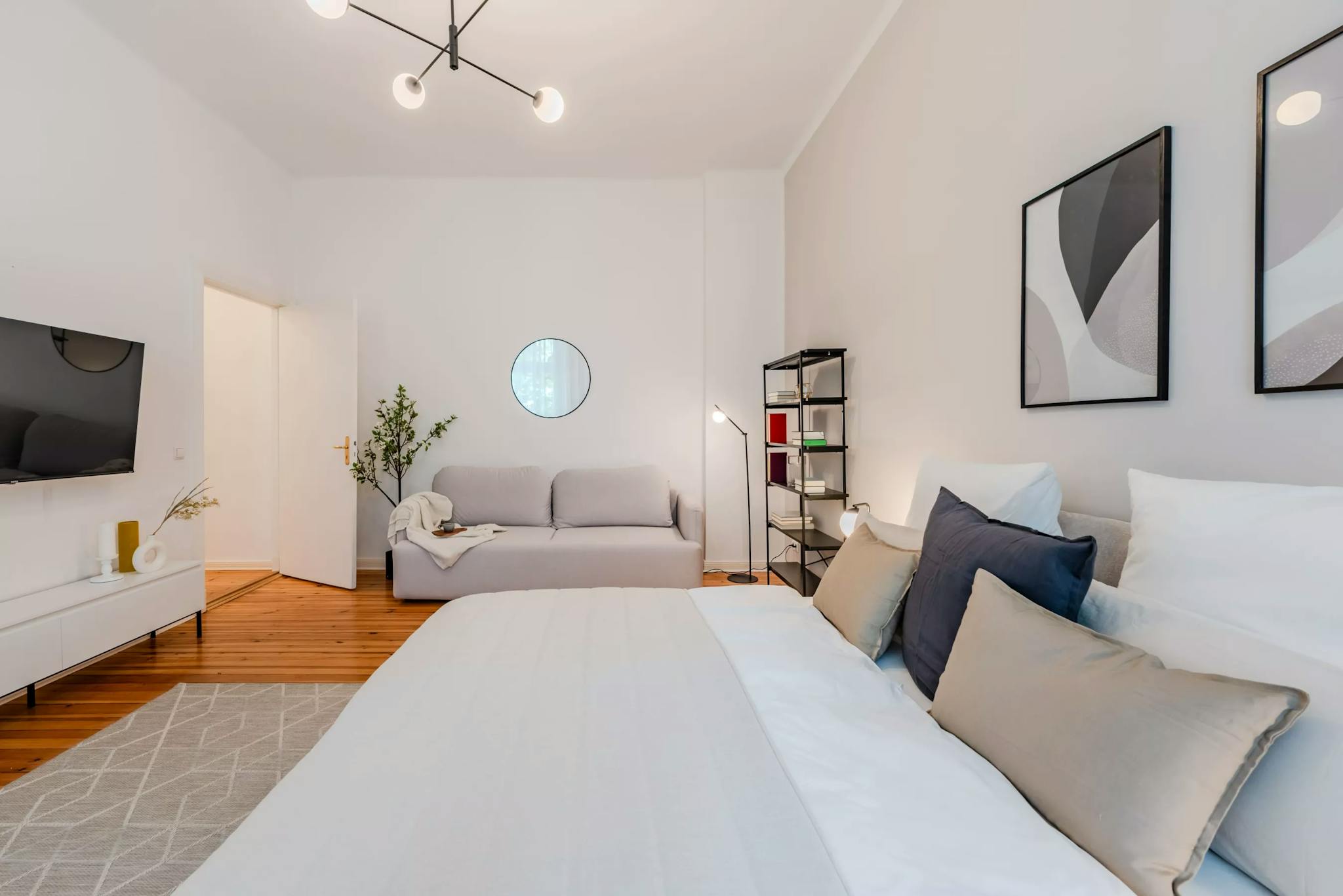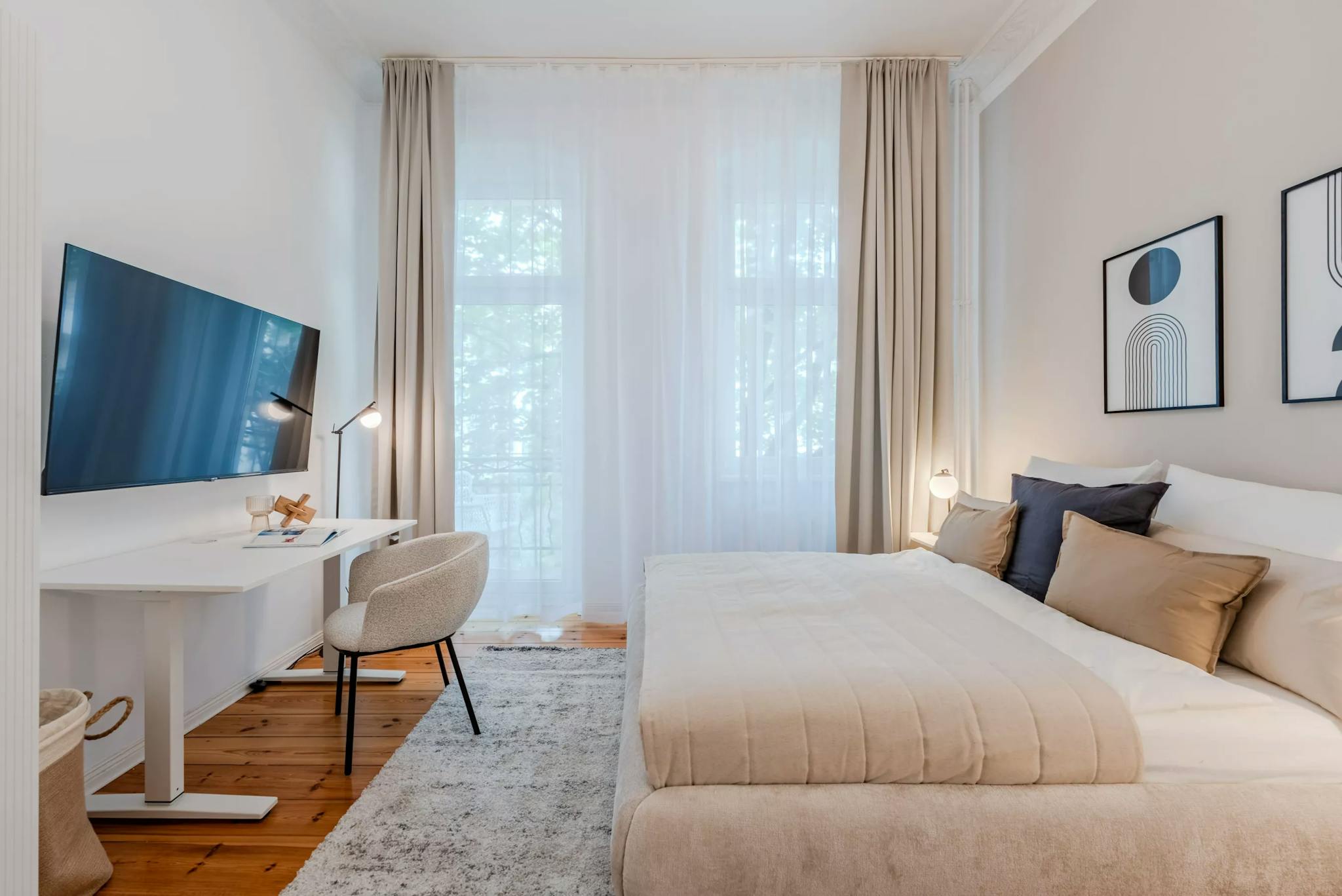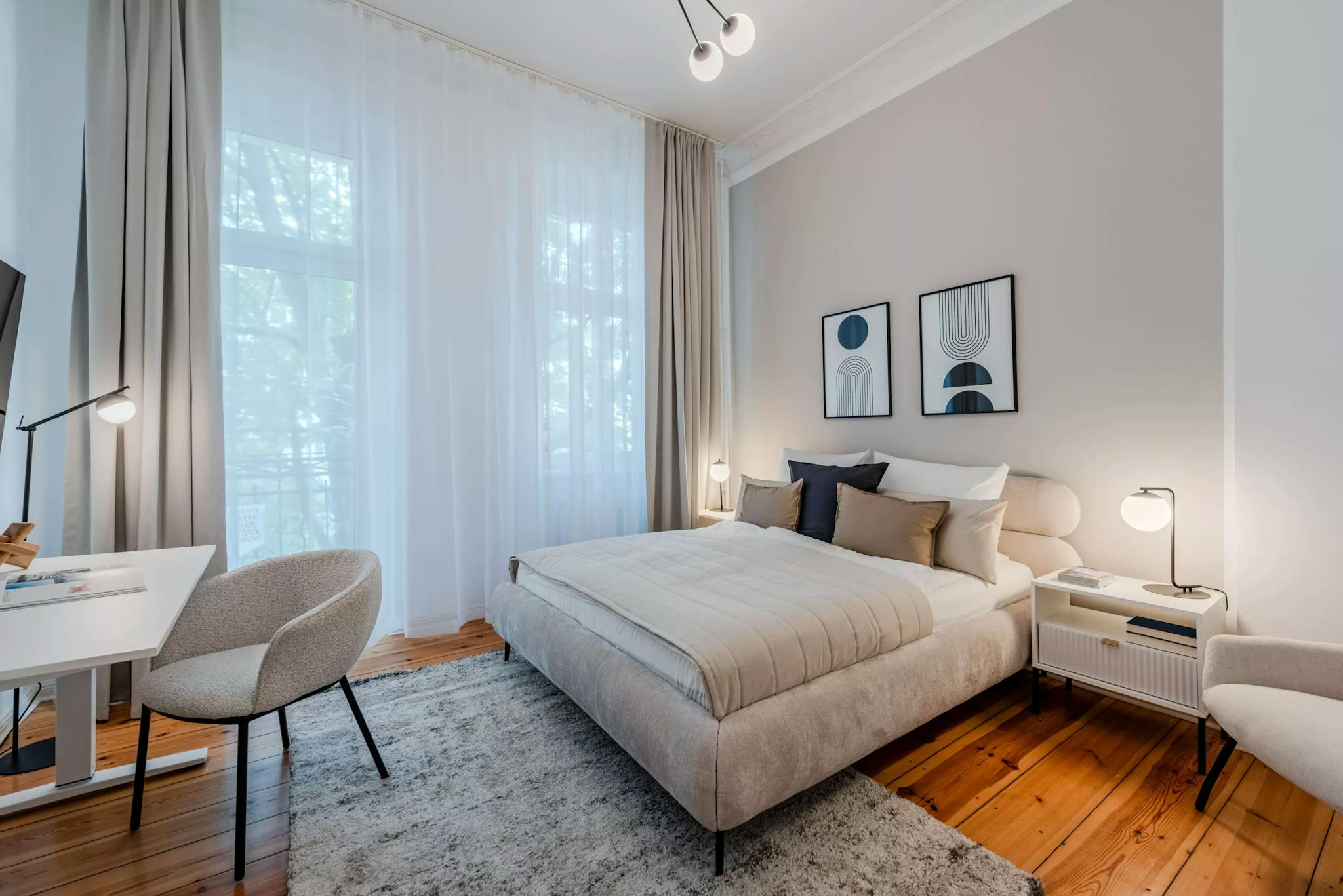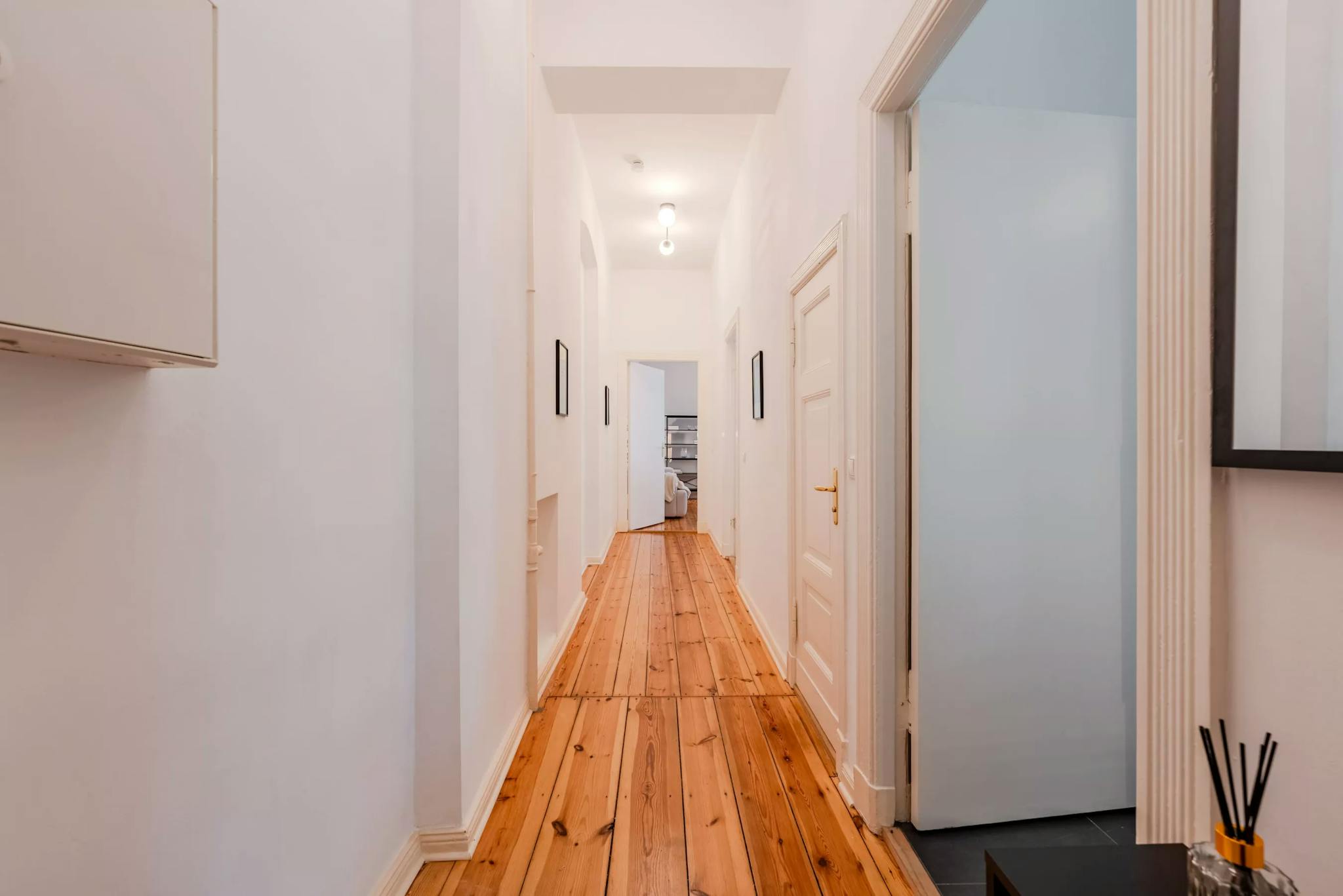An entrance hall provides a thoughtful space to store personal items, keeping the rest of the apartment tidy and welcoming. Ideal for short-term renters (under 12 months), this apartment combines luxury and practicality in Berlin's dynamic setting.