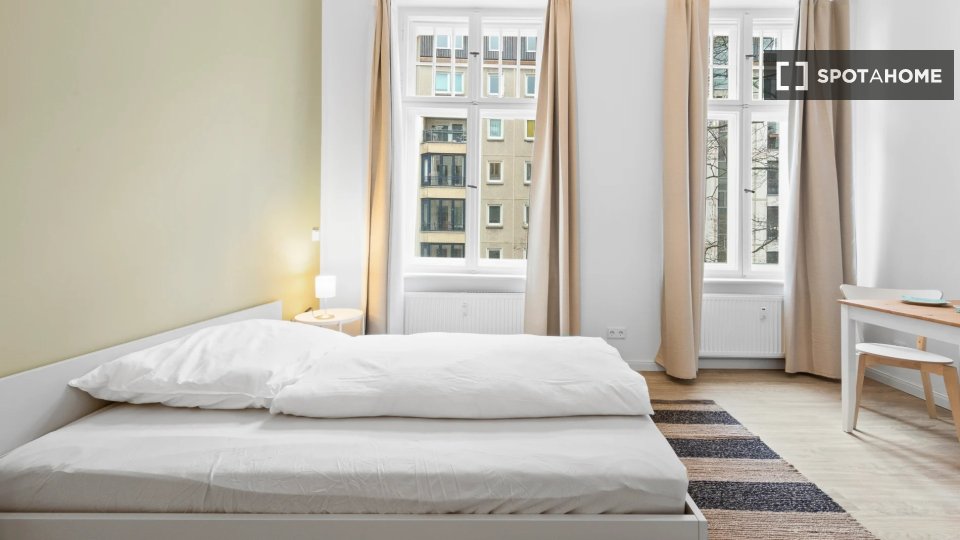 Pets allowedAllowedLooking for a place in Berlin? This studio offers a cozy and furnished space perfect for professionals or students. The spot is fully equipped, featuring an equipped kitchen and access to common amenities like a washing machine and dryer. Rest assured, Spotahome has verified this property. Also note, pets are allowed with restrictions, though smoking is not permitted.