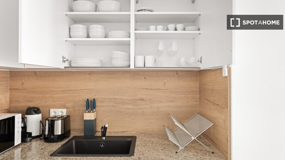 Furnished 1-bedroom apartment for rent in Berlin. The property is on the 4th floor.