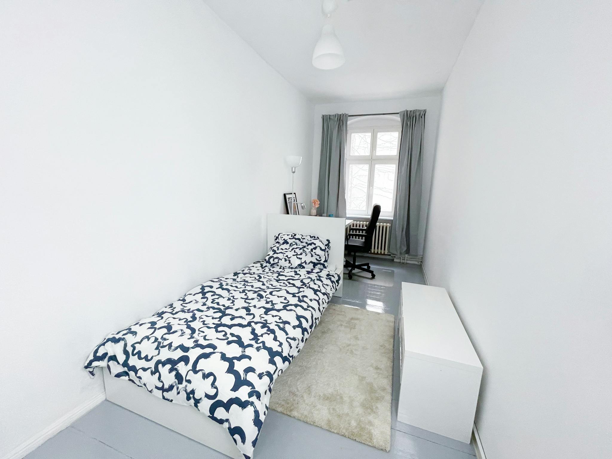 Non-SmokingNot allowedThe room is fully furnished. This includes the following pieces of furniture: - bed, desk, chair, wardrobe, lamp, curtains The room is part of a 4-bedroom renovated apartment (60m2)