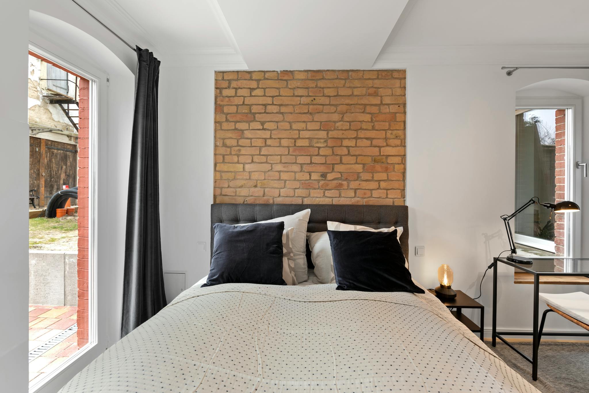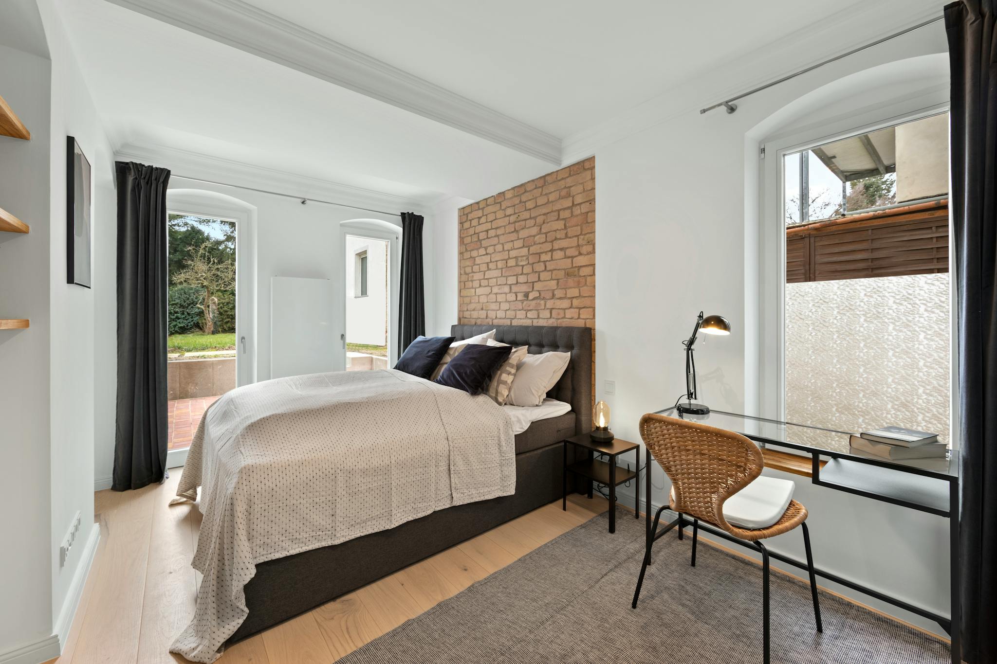 All 3 bedrooms consist of a comfortable king-size double box-spring bed (hotel standard), a wardrobe and partly also desks. Both bathrooms are equipped with large modern showers. You can easily wash and dry your laundry directly in the bathroom with a modern washer-dryer.