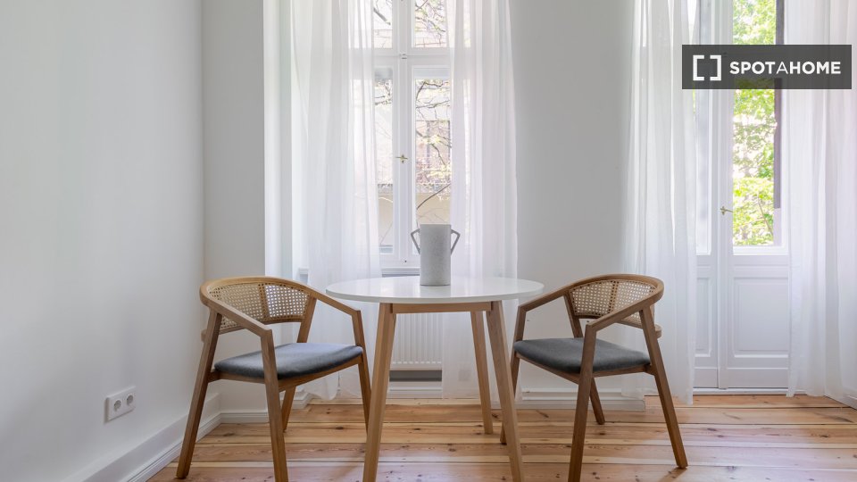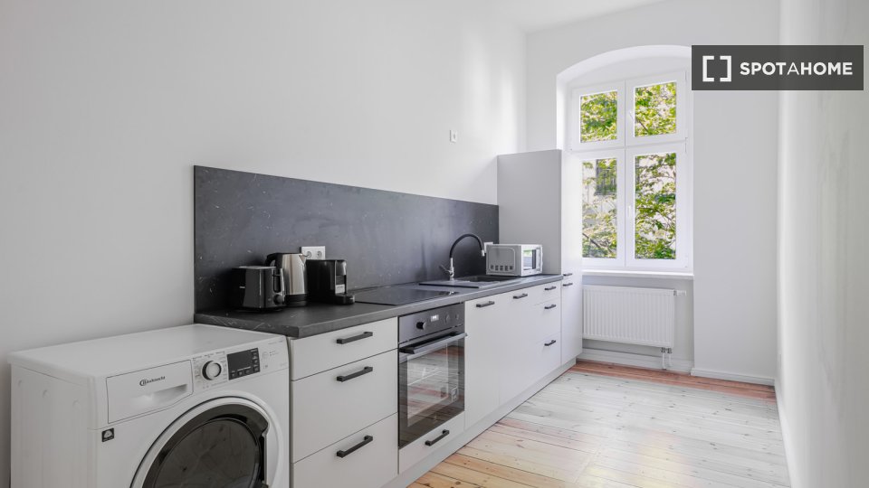 This apartment is located in Berlin, a vibrant city filled with attractions and amenities. You can explore local dining options such as Pizzeria Latino, Bardaf, and Banana Calling, all within walking distance. There are also markets like LPG BioMarkt nearby, providing convenience for shopping. This neighborhood ensures a delightful living experience in Berlin.