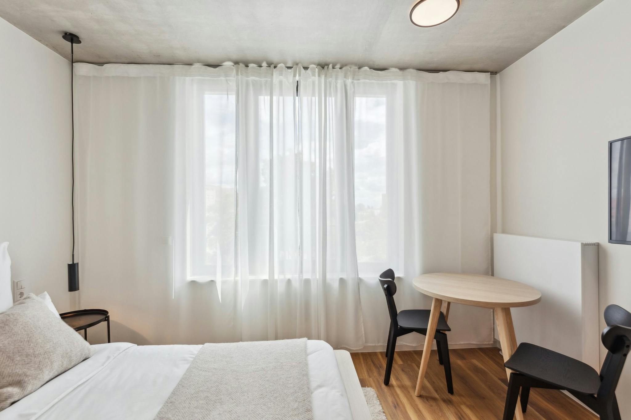 All our studios are fully equipped with everything you need to feel right at home. Enjoy the many amenities at your disposal, including a fully equipped kitchen, a comfortable bed with a premium mattress and bedside tables, an ensuite bathroom, and a versatile area with a table and two chairs, perfect to work or dine. While regular cleaning is not included, it can be booked upon request.Please note, if you are booking as a couple, there will be an additional 200€ charge added to the price of the studio.