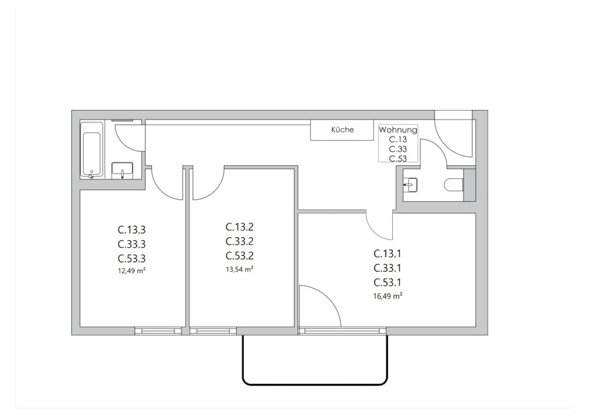 • shared balcony / terrace (access from C.12.3 & C.12.4)
