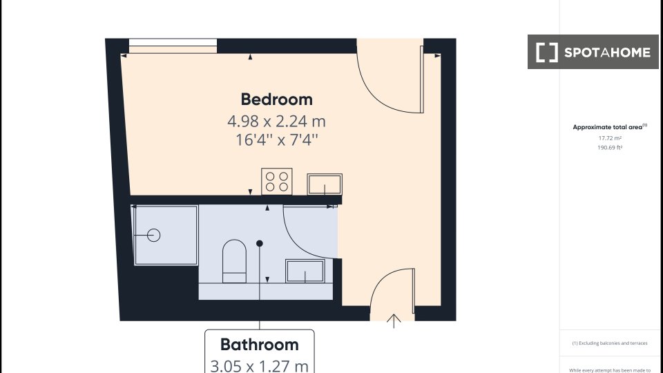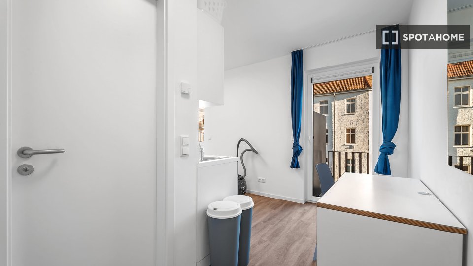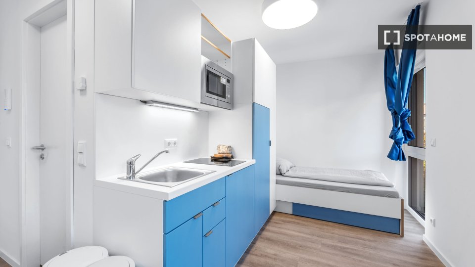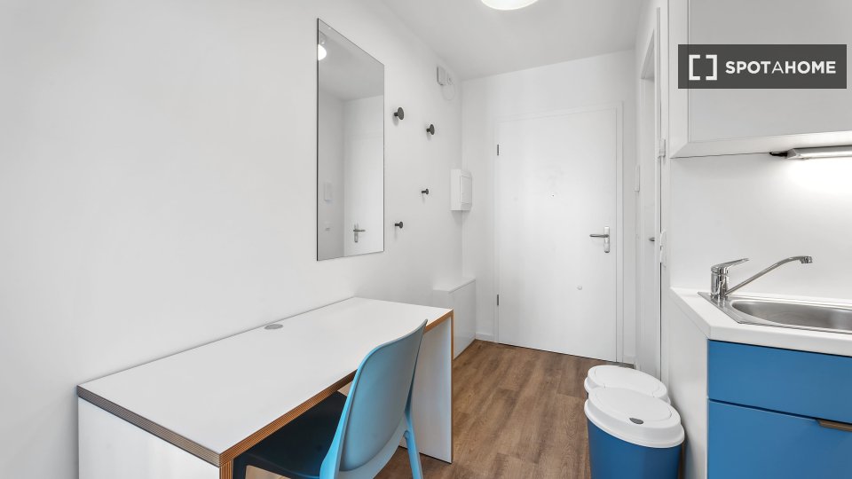 It is a studio, so it has an integrated kitchenette and its own bathroom.