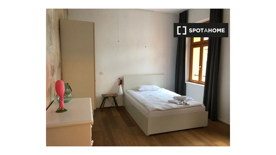 The apartment is situated on Thaerstraße in the Friedrichshain district and is well connected to the rest of Berlin by bus, U-bahn, and tram. There are parks nearby.