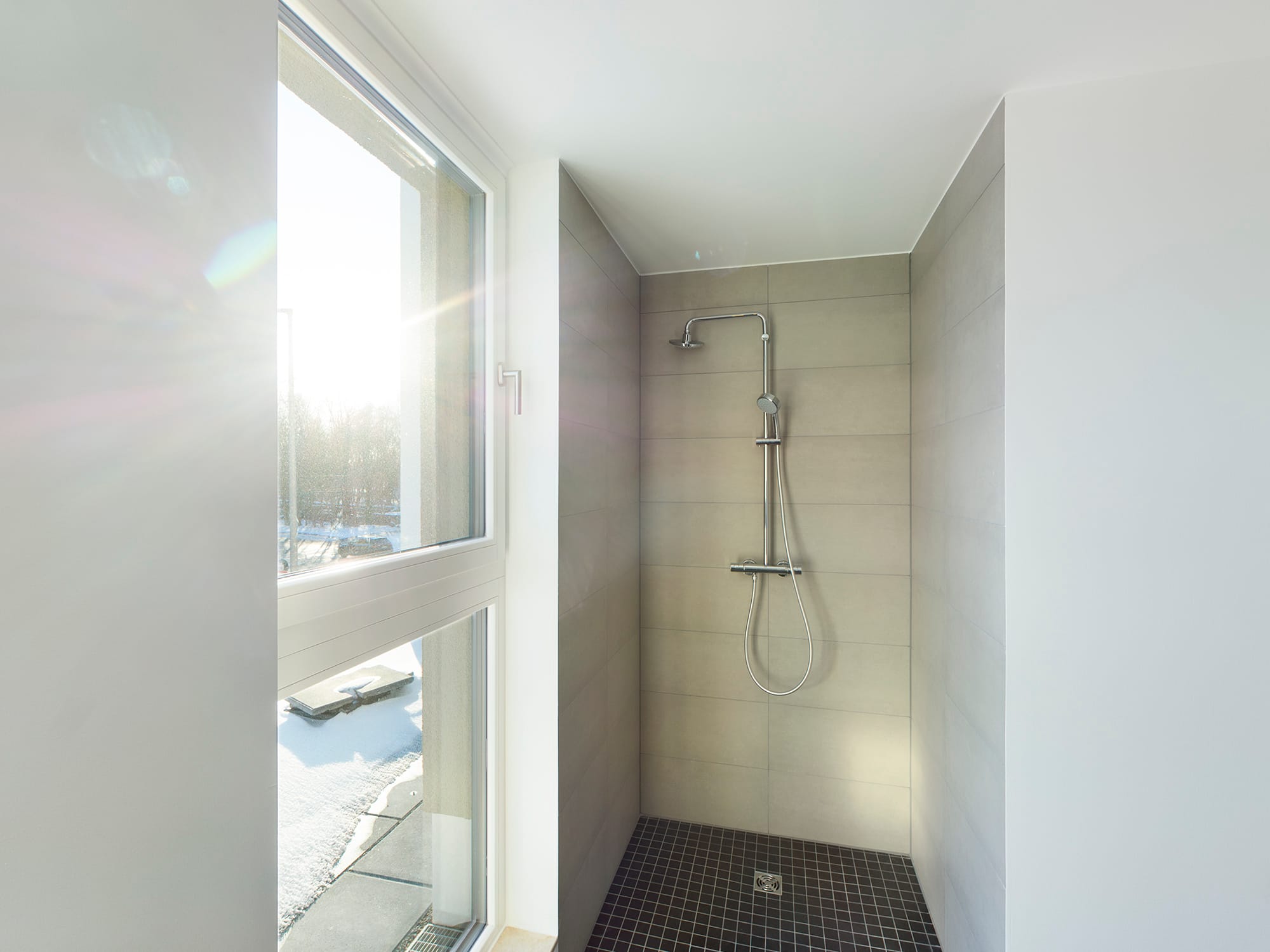 Shower, Mirror, Fitted kitchen, Refrigerator, Dishwasher