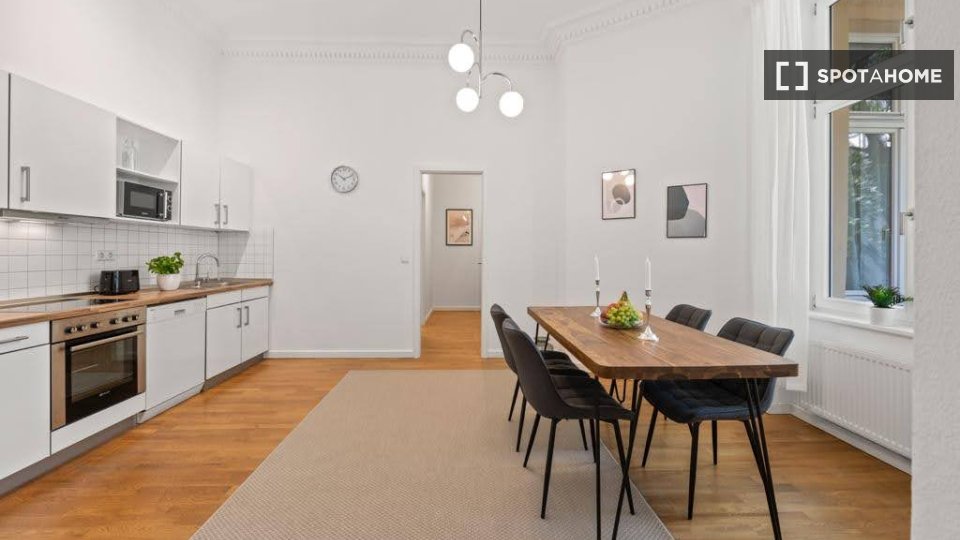 Pets allowedAllowedFurnished studio apartment for rent on Rosenthaler Str.. The property is on the 5th floor of a building with an elevator. The property includes equipped kitchen, balcony, washing machine, and dryer.