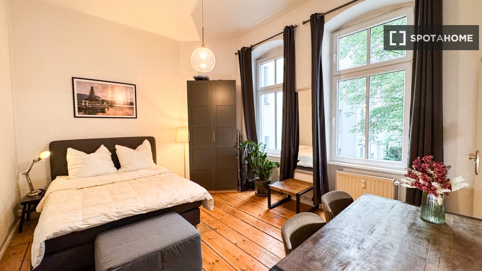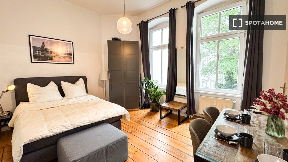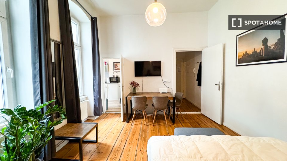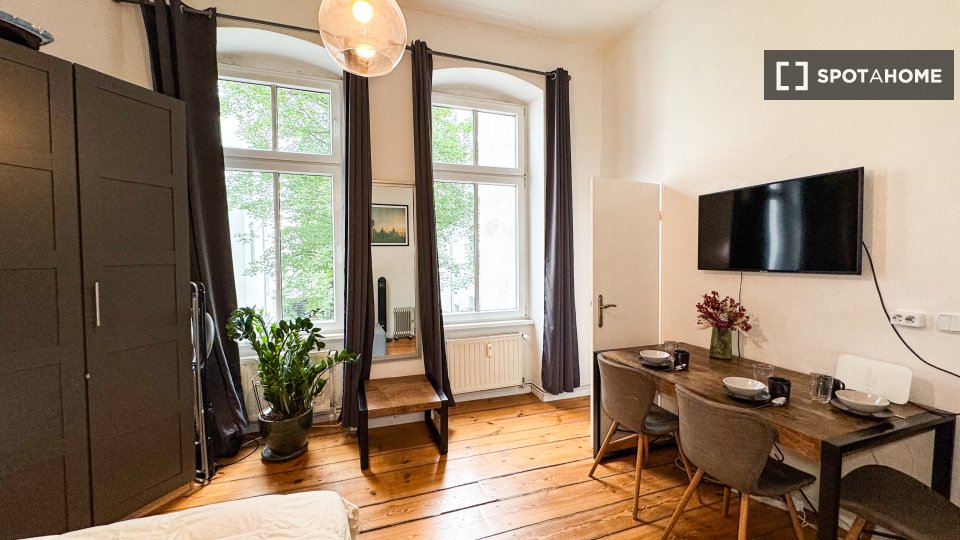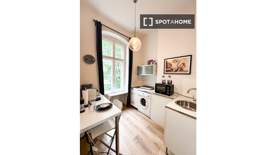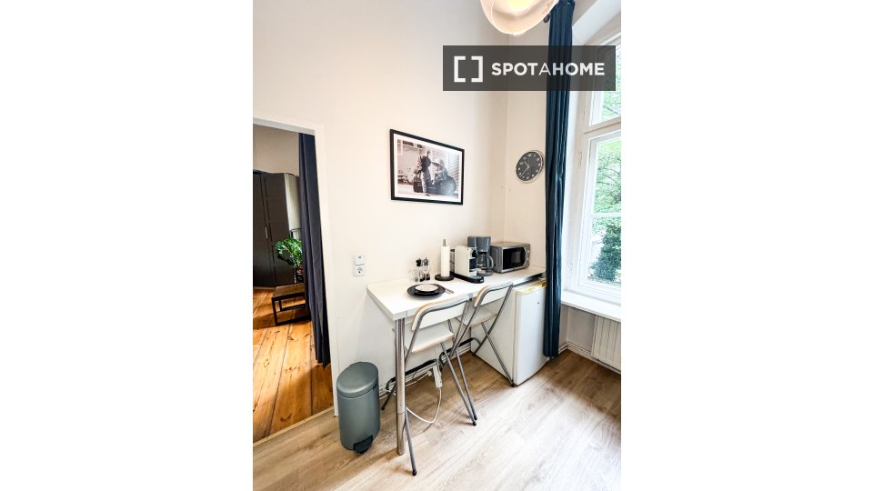 Pets not allowedNot allowedFind comfort and convenience in this studio for rent in Berlin. This furnished listing comes with an equipped kitchen, a washing machine, and all bills included for seamless living. Although the apartment does not include features like an elevator or balcony, it provides central heating and a central heated water system for added comfort.