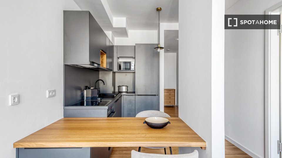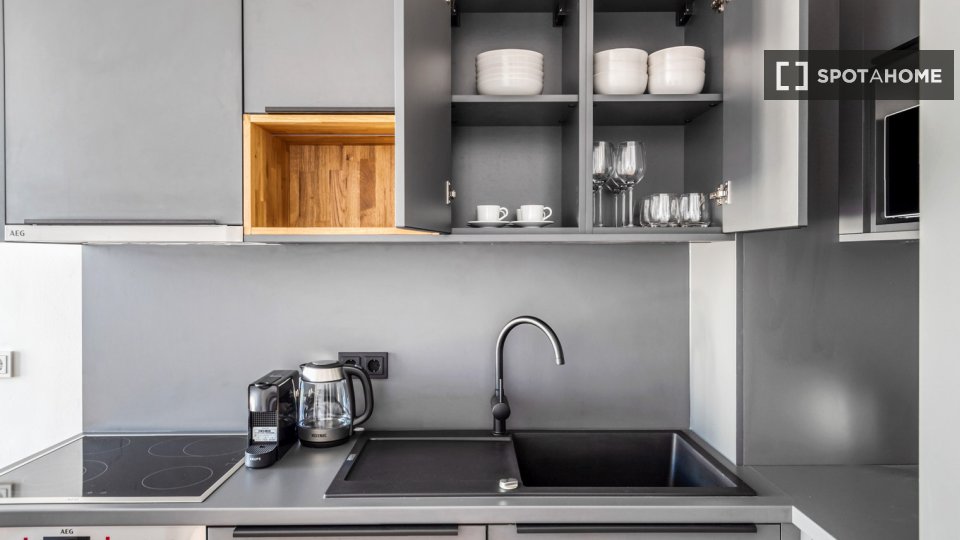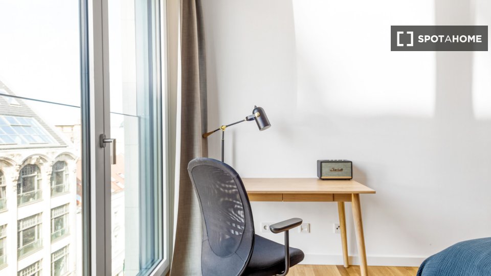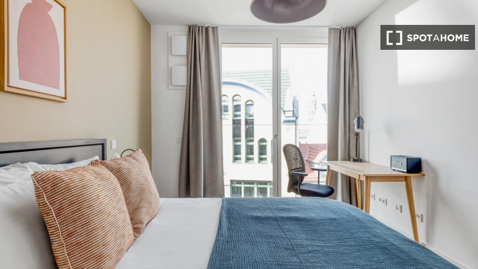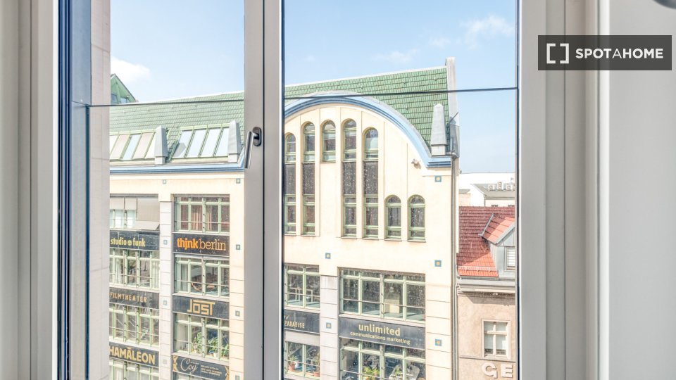 Furnished apartment with 1 bedroom for rent on Rosenthaler Str. The property is on the 5th floor of a building with an elevator.