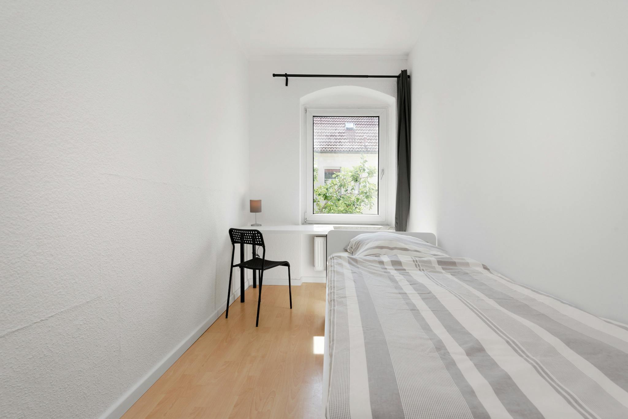 this is a fully furnished room in a shared flat. The room has a comfortable bed, a desk with chair and a wardrobe for your clothes. Also the common areas are fully equipped with washing machine, cooking equipment and all you need for your daily living.