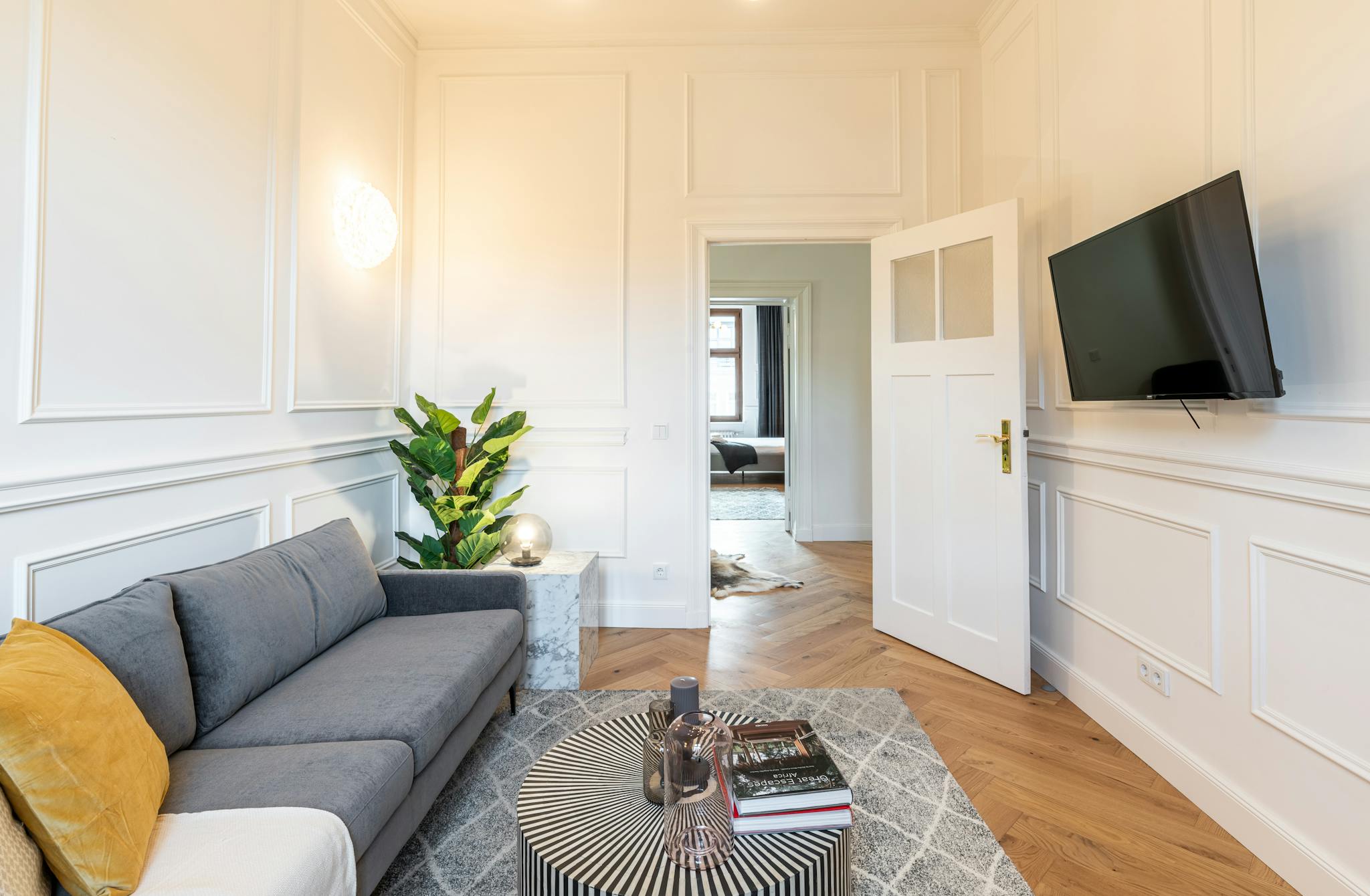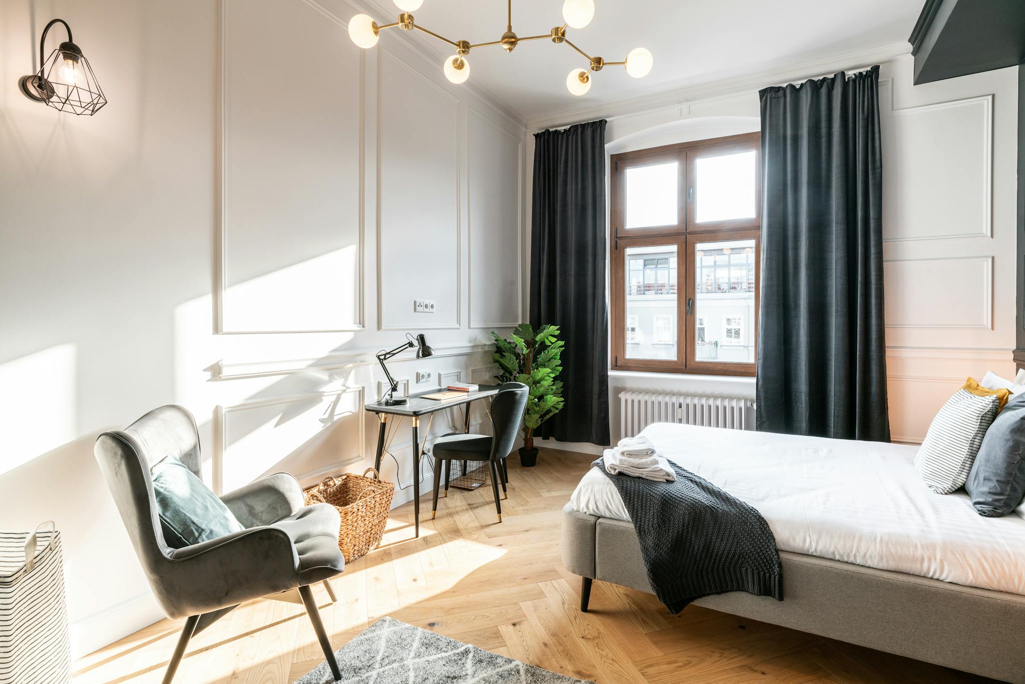 A perfect nest in the heart of Berlin. Designed with attention, the beautiful room is inside a beautiful “Altbau” building, with gorgeous architectural details. Bright, open, and modern, it also boasts an inviting vibe without forgetting to be comfortable. This is the ideal base for experiencing Berlin like a true Berliner. A great starting point for exploring the rest of the city and its many hidden decadent spots. The Building and the apartments were renovated in 2020.