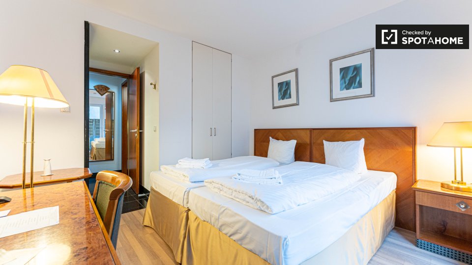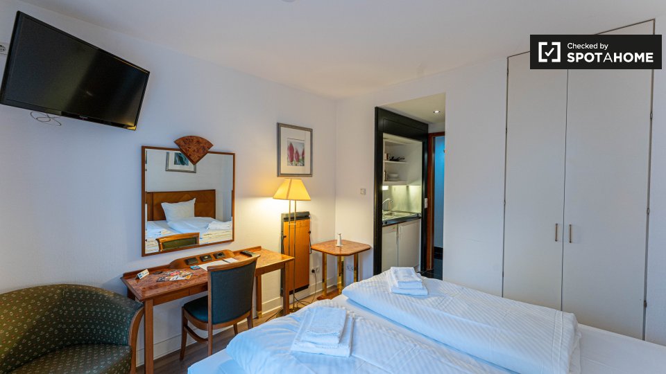 In addition, the apartment is equipped with bedside tables, an office desk, a chair, an armchair and a TV and has a free and high-quality internet Wi-Fi.
