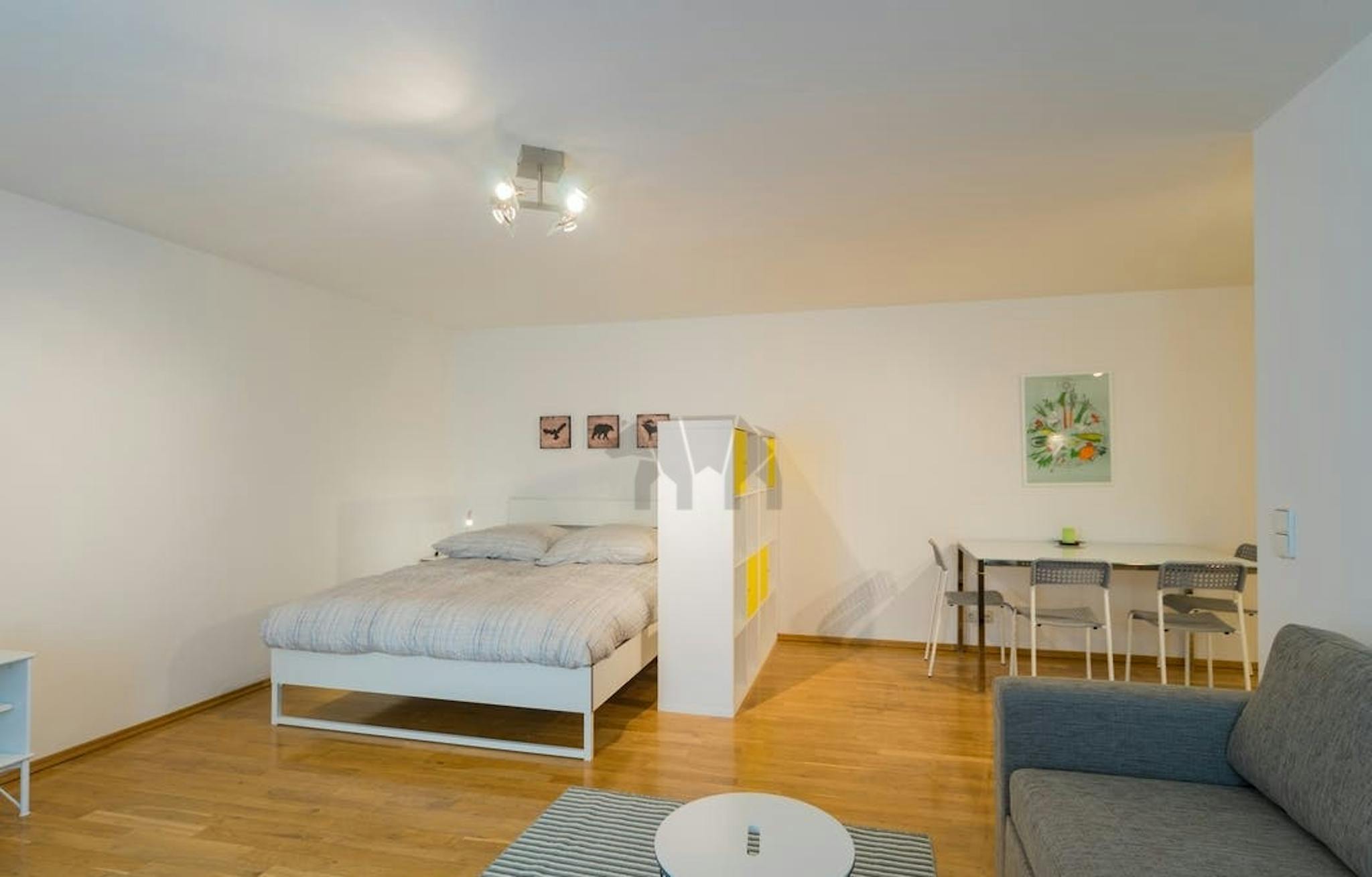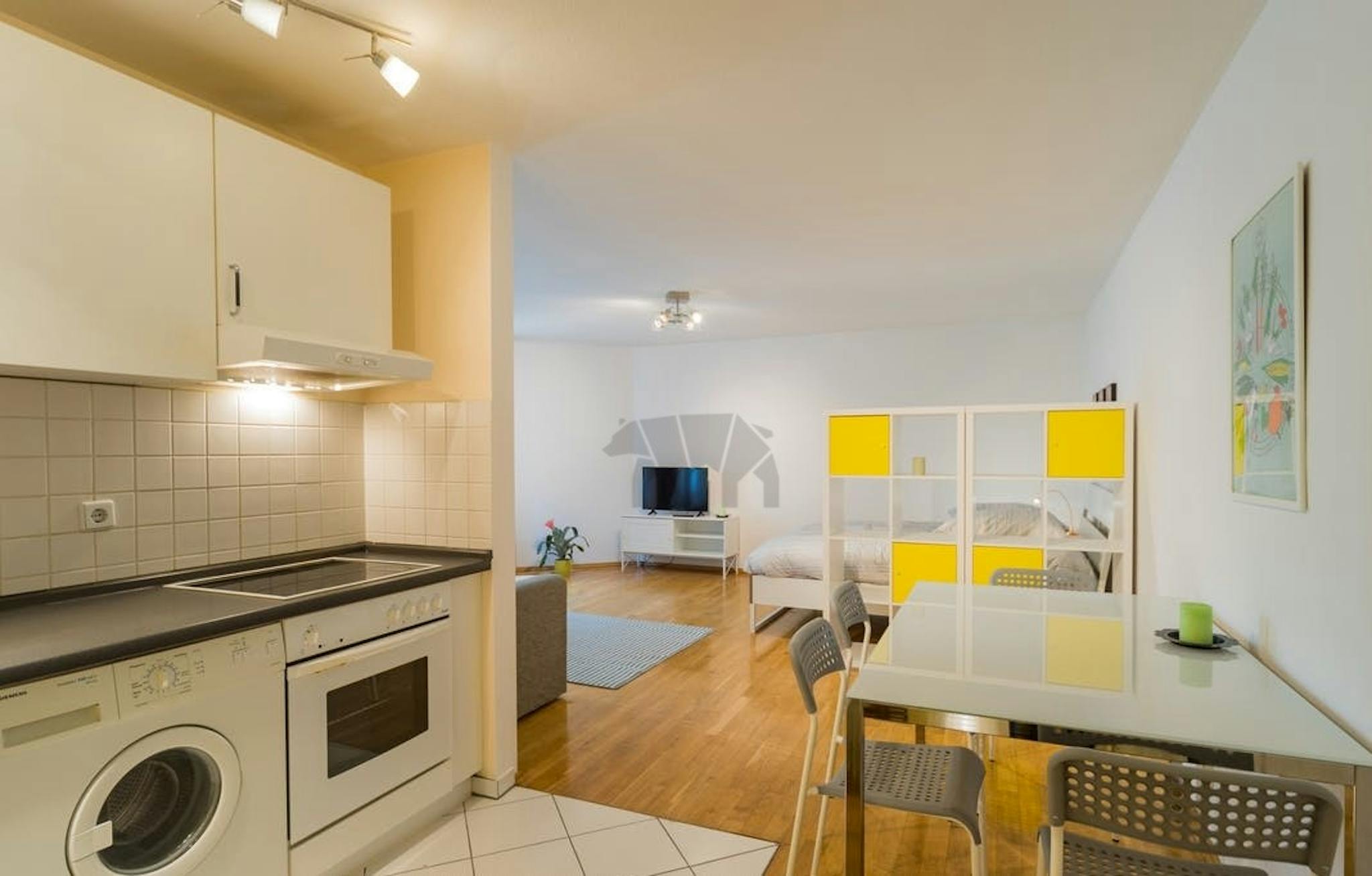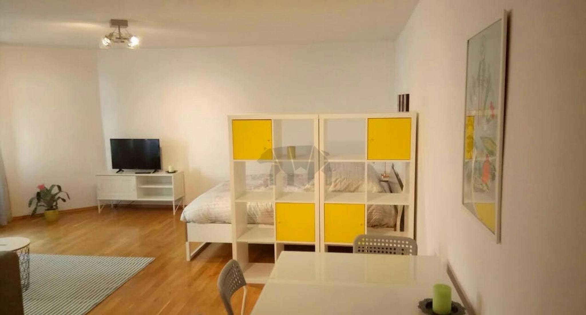 This unit is perfect for a single person or a couple looking for space and comfort in a central location. It has a combined living/sleeping room with a double bed, a modern open kitchen, a spacious bathroom with a bath and lots of storage room. You can find plenty of activities here, such as wonderful shopping locations, restaurants, cafes, gyms, and a lot more around every corner. It's great for students as it is well connected to public transportation through U-Bahn station Schwartzkopffstr. which is on the U6 line.