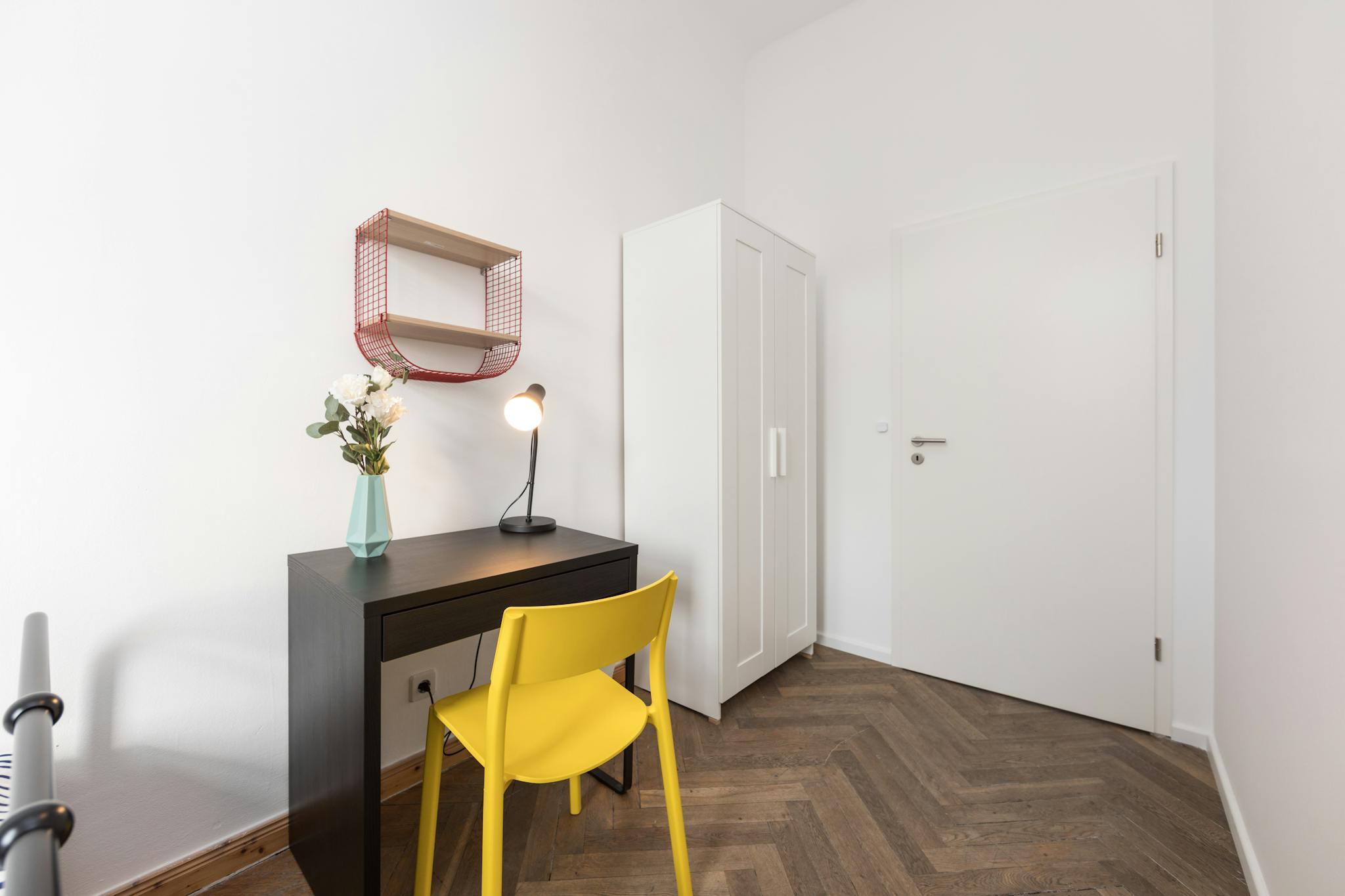 We’re excited to offer a bright and fully furnished room (Room 1) in a shared apartment on the fourth floor. The room is equipped with a comfortable bed, desk, chair, and wardrobe – ideal for studying, working, or simply relaxing.