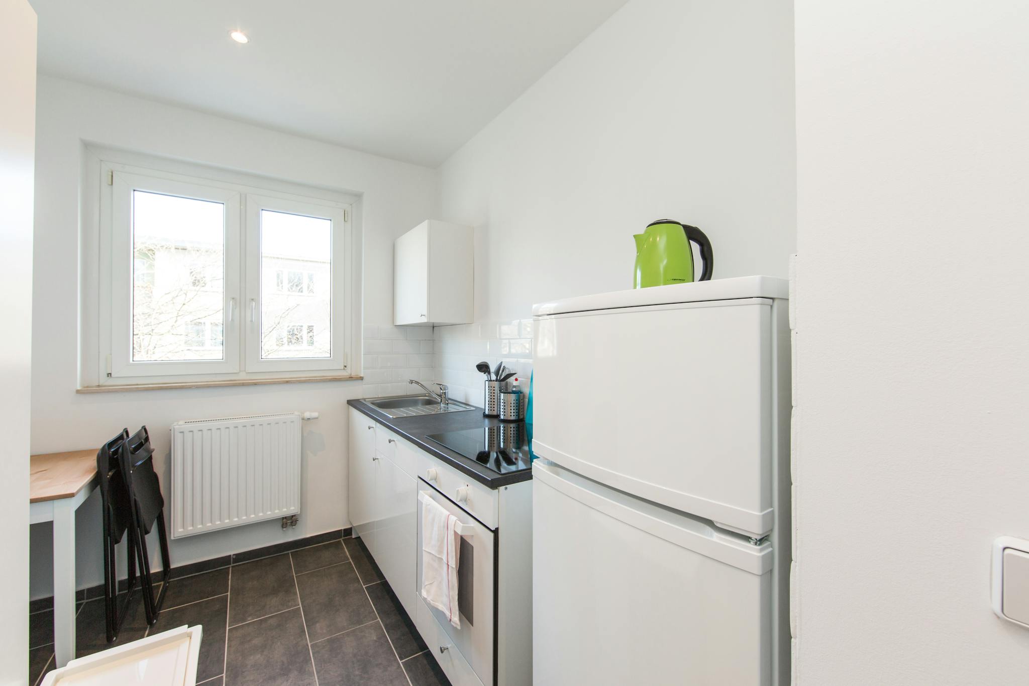 The monthly rent price is all inclusive (rent + heating + water + Internet + GEZ/german TV license fee).