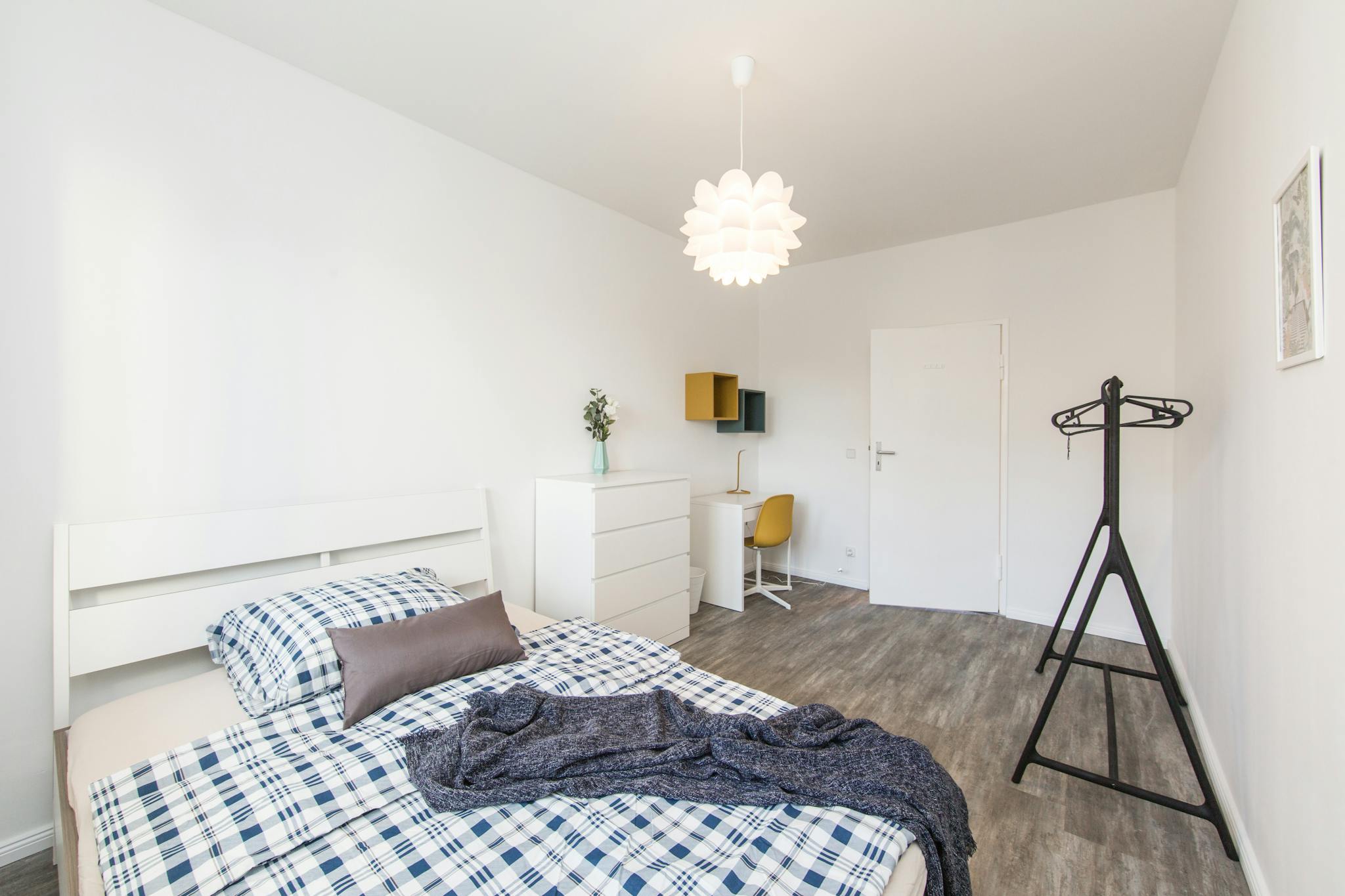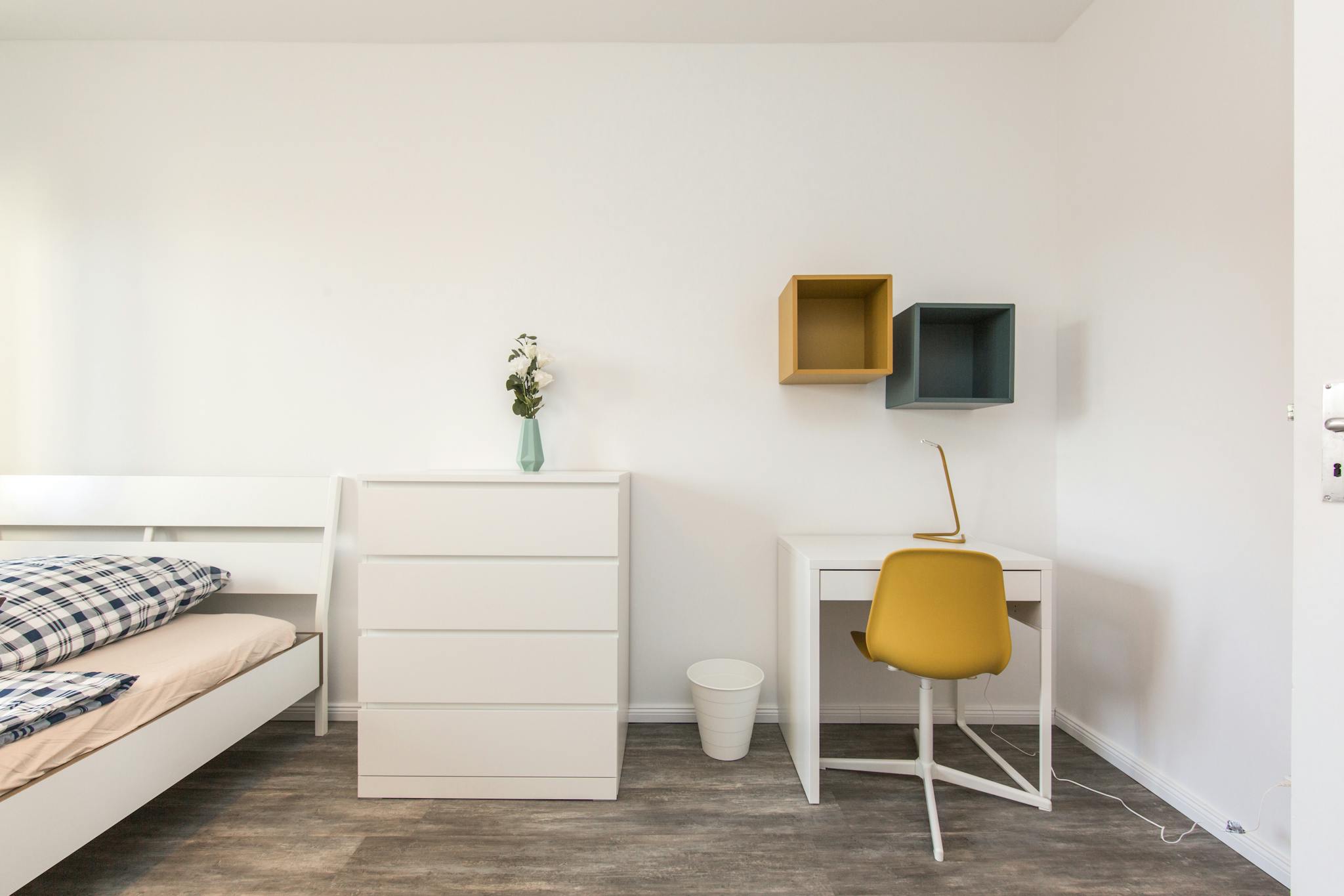 this is a fully furnished room in a shared flat. The room has a comfortable bed, a desk with chair and a wardrobe for your clothes. Also the common areas are fully equipped with washing machine, cooking equipment and all you need for your daily living.