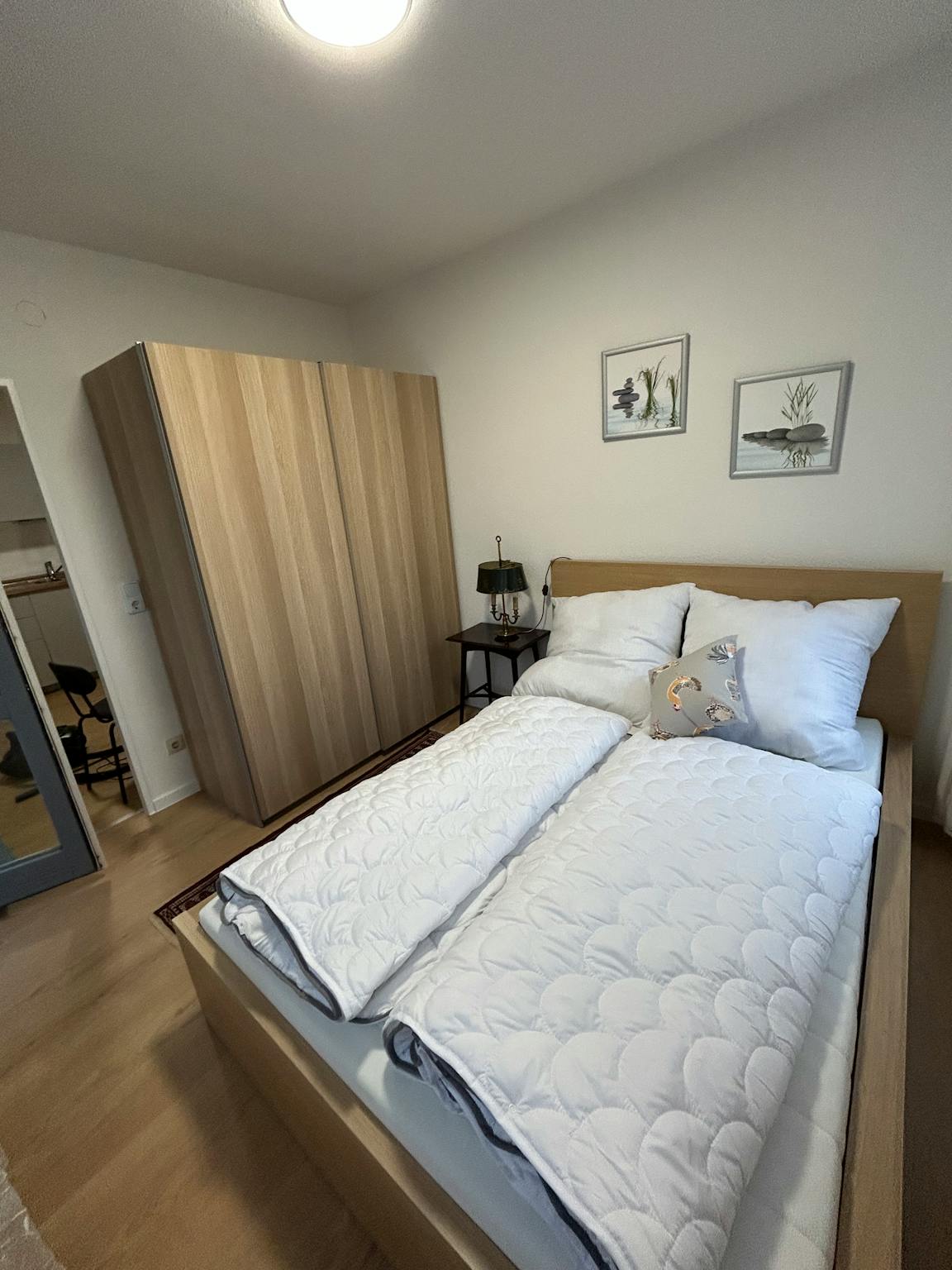 Fully furnished: bed, wardrobe, desk, storage