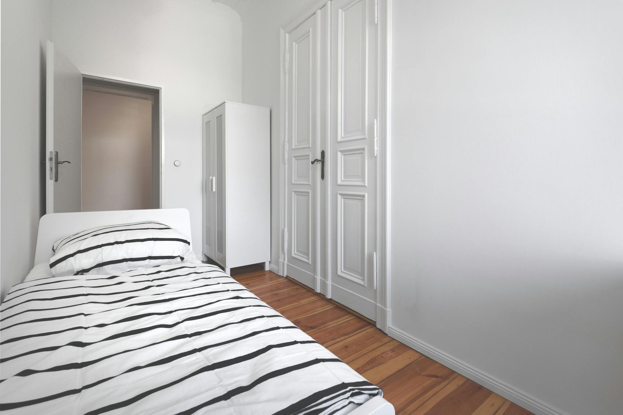 this is a fully furnished room in a shared flat. The room has a comfortable bed, a desk with chair and a wardrobe for your clothes. Also the common areas are fully equipped with washing machine, cooking equipment and all you need for your daily living.