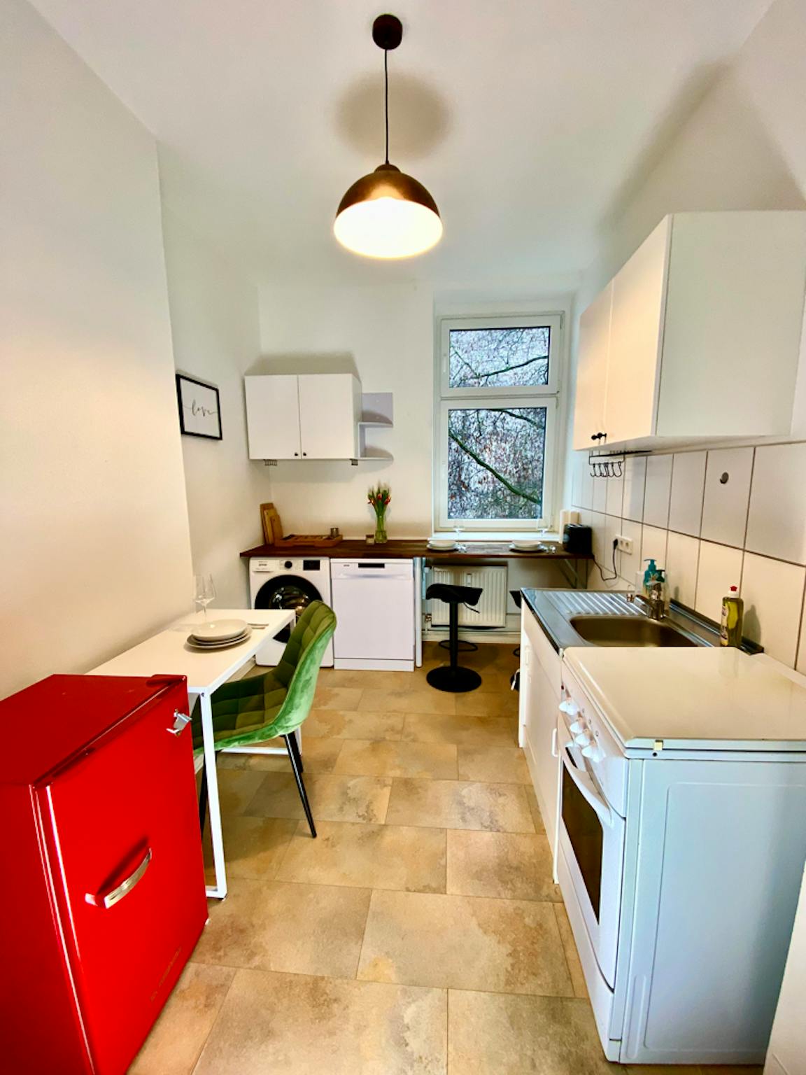 Non-SmokingNot allowedDiese Einzimmerwohnung ist die perfekte Lösung für jeden, der nach einem komfortablen und stilvollen Lebensraum sucht. Es befindet sich in einer sehr guten Gegend, mit zahlreichen Geschäften und Restaurants in der Nähe. Die Wohnung verfügt über ein modernes Design und neutrale Farben und bietet ein geräumiges Wohnzimmer/Schlafzimmer mit voll ausgestatteter Küche und Bad. Im Schlafbereich stehen ein Doppelbett, eine Kommode, ein Nachttisch und Stauraum zur Verfügung. Die Küche verfügt über einen Kühlschrank, einen Herd, eine Spülmaschine und alle notwendigen Geräte. Für zusätzlichen Komfort gibt es ein voll ausgestattetes Badezimmer mit Dusche. Diese Wohnung wäre ideal für eine Einzelperson oder ein Paar, das einen bequemen und pflegeleichten Lebensstil sucht.