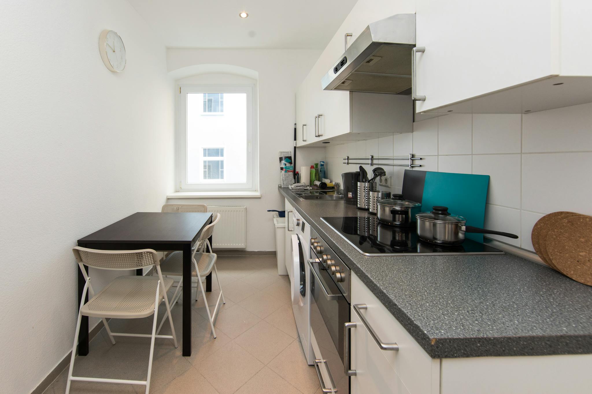 The monthly rent price is all inclusive (rent + heating + water + Internet + GEZ/german TV license fee).