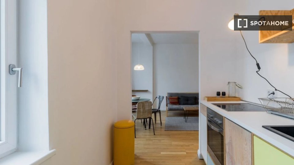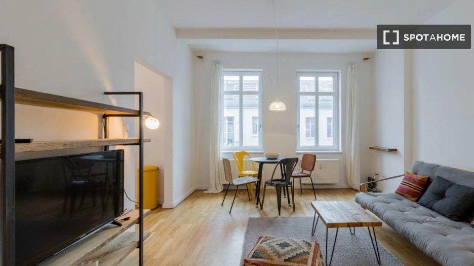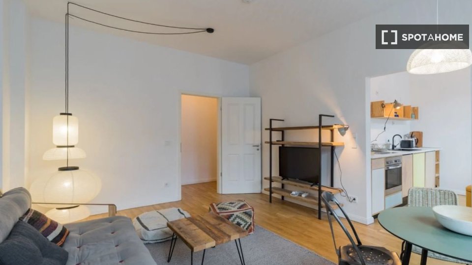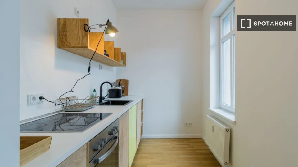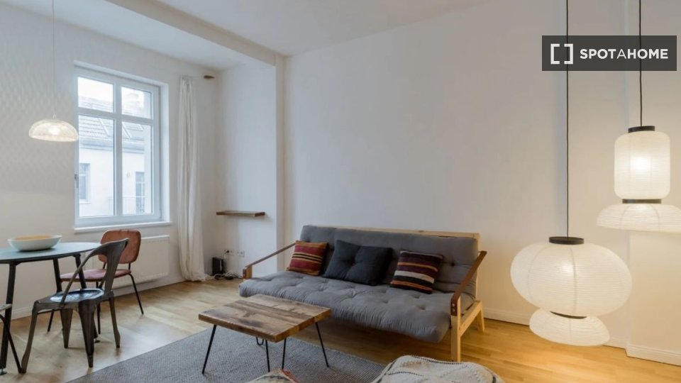 Pets allowedAllowedDiscover a stunning 1-bedroom apartment located in Berlin. This fully furnished property offers an equipped kitchen, a balcony, and a private washing machine. It's exterior, creating a bright and welcoming atmosphere. All utility bills, including electricity, water, gas, wifi, and heating, are covered, making it an exceptional choice. Couples, professionals, students, and any gender are welcome. Pets are allowed with restrictions, and smoking is not permitted. As the apartment is Spotahome-verified, you can trust its quality and condition.