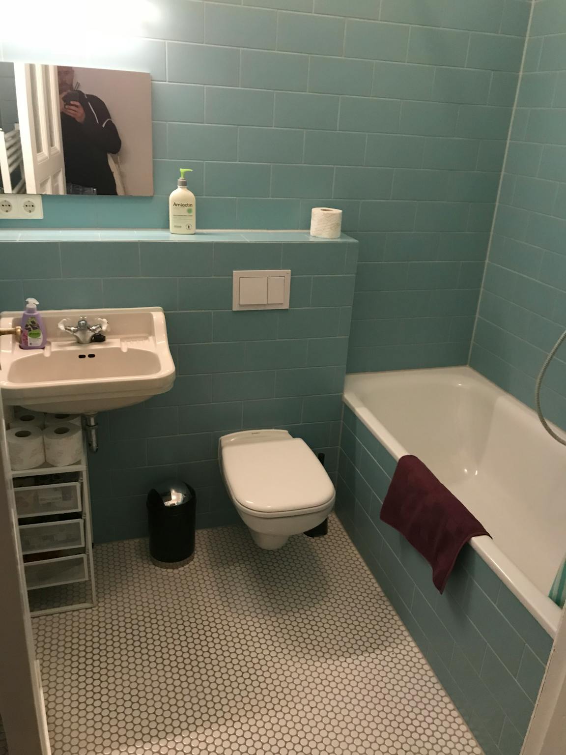Deutsch: Die Wohnung ist ein offenes Studio mit drei Fenstern zum Hinterhof, von denen eines ein französischer Balkon ist. In dem ruhigen Hof steht ein schöner Kastanienbaum. Der Boden ist alter Dielenboden, der sorgfältig renoviert wurde. Badezimmer und Küche sind neu und wunderschön gemacht. Die öffentliche Verkehrslage ist sehr gut, es gibt einen großen Bahnhof Gesundbrunnen mit Regionalzügen, die Sie z.B. in 7 Minuten zum Potsdamer Platz bringen, S-Bahn-Ring und Nord-Süd-Linien verkehren, die U8 ist 2 Gehminuten vom Haus entfernt. In 5 Minuten sind Sie in Mitte und in 15 Minuten in Kreuzberg. Humboldthain ist 5 Gehminuten entfernt, ein großer Park mit Sommerpool, viele Restaurants in einer sehr diversen Nachbarschaft. Großer Supermarkt 7-24h direkt an der Ecke. Biomarkt am Bhf Gesundbrunnen
