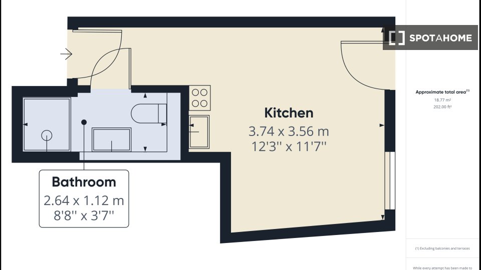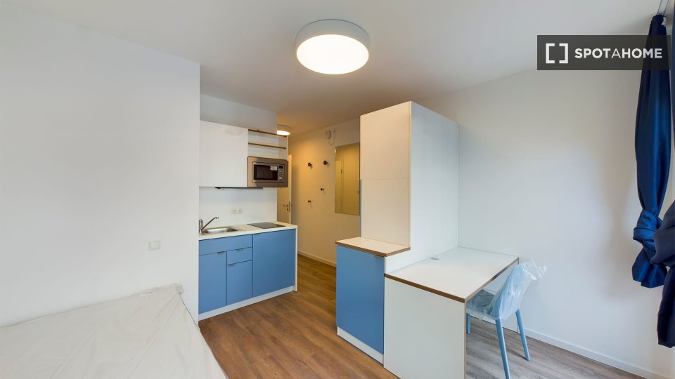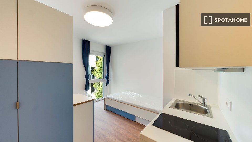 It is a studio, so it has an integrated kitchenette and its own bathroom.
