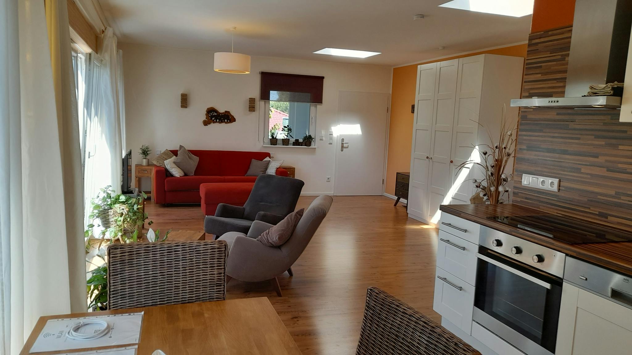 Über einen separaten Zugang erreichen Sie Ihr ca. 44 m2 großes Domizil. Wir möchten, dass es Ihnen an nichts fehlt. So wurde diese großzügige Wohnung von uns liebevoll und überwiegend hochwertig eingerichtet vom Fön bis zum Rührgerät, Handtücher, Bettwäsche vorhanden, schnelles Internet.