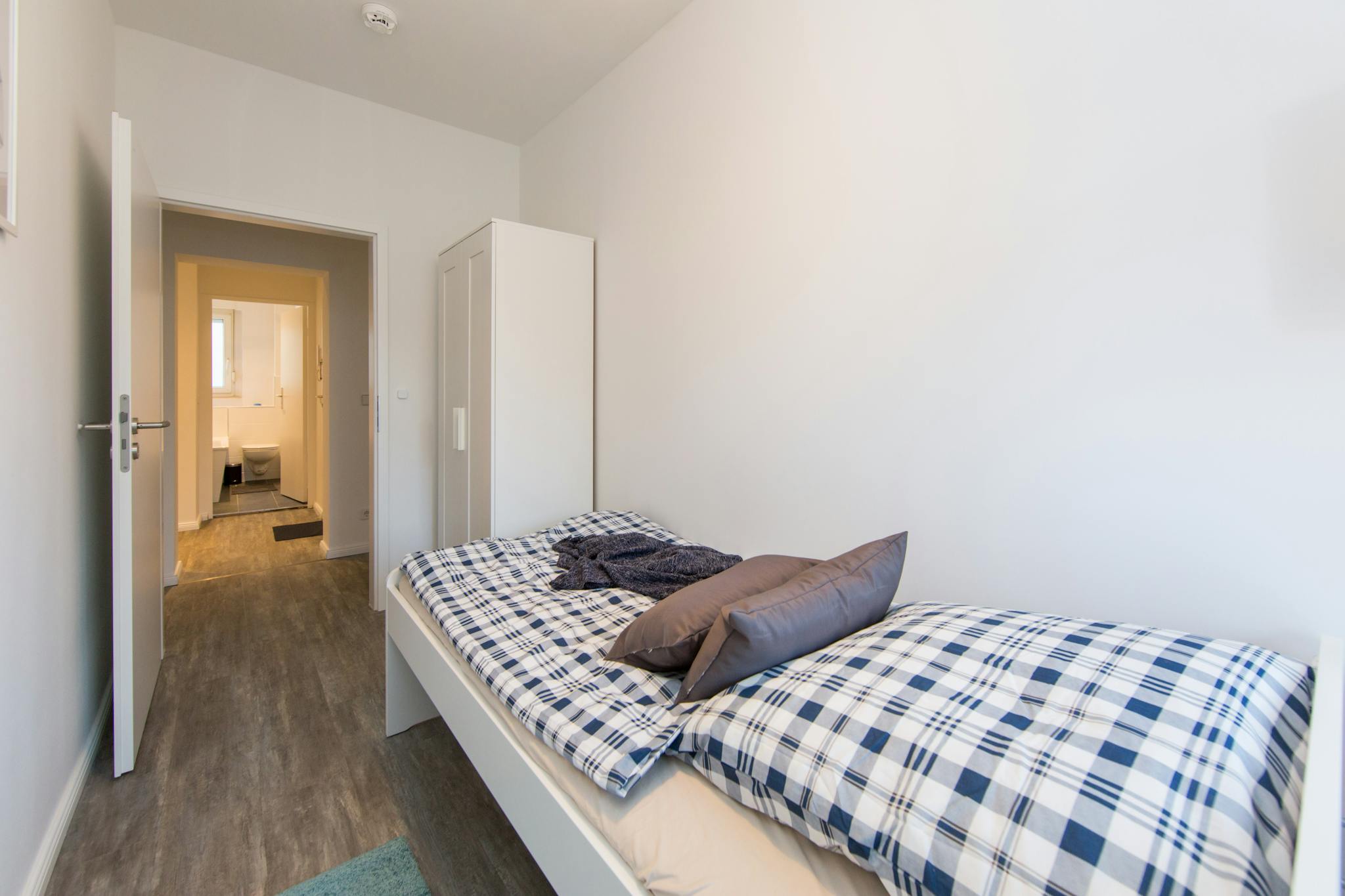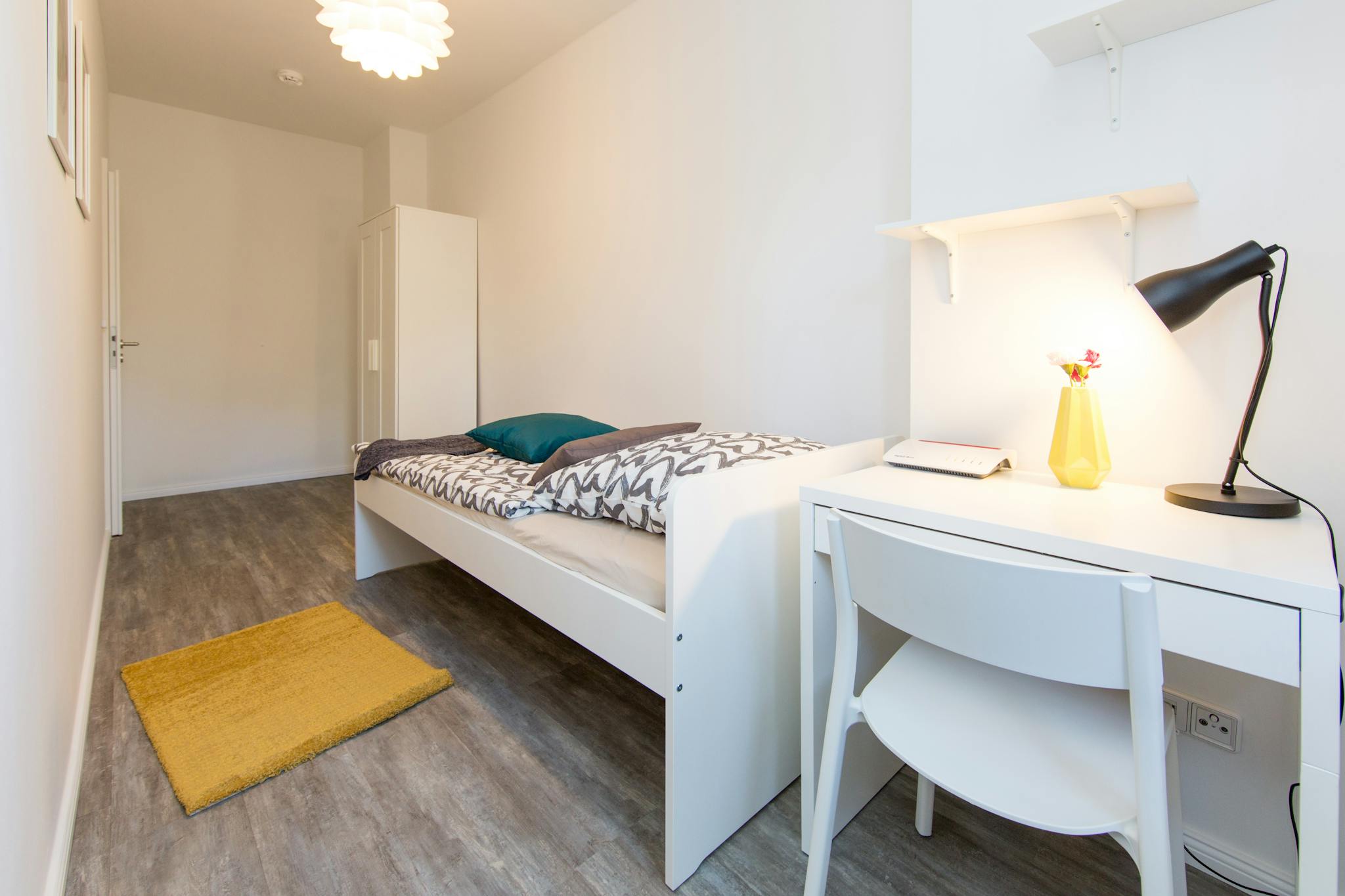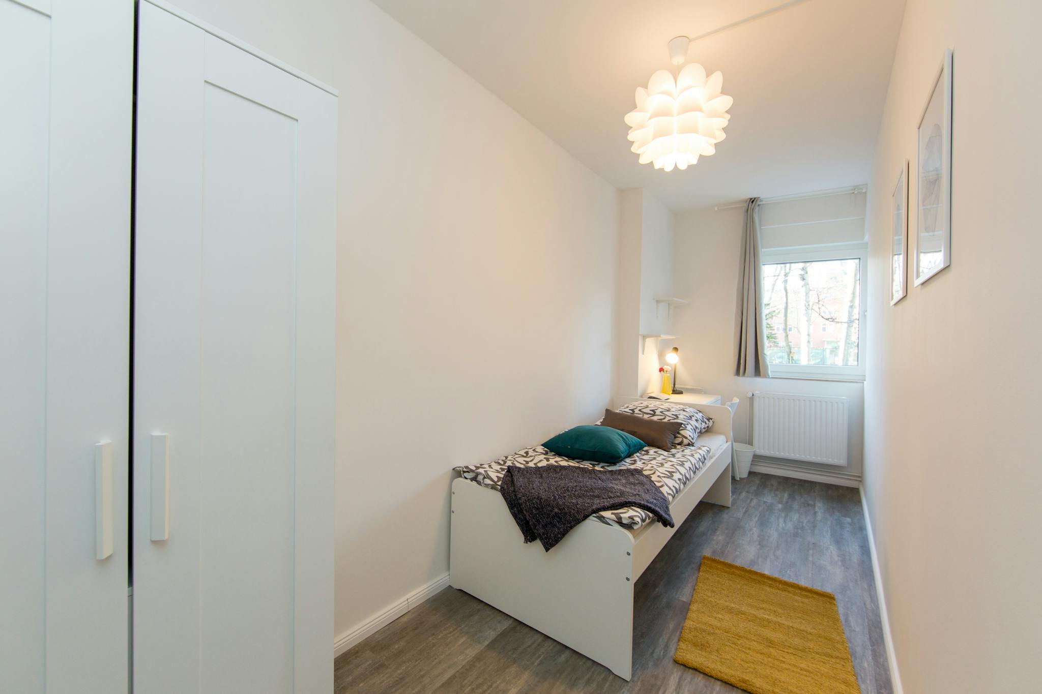 this is a fully furnished room in a shared flat. The room has a comfortable bed, a desk with chair and a wardrobe for your clothes. Also the common areas are fully equipped with washing machine, cooking equipment and all you need for your daily living.