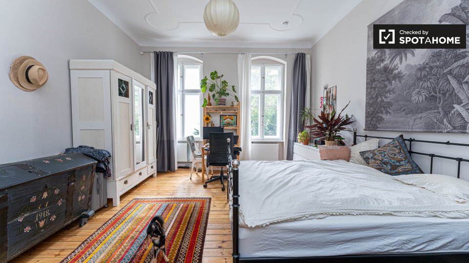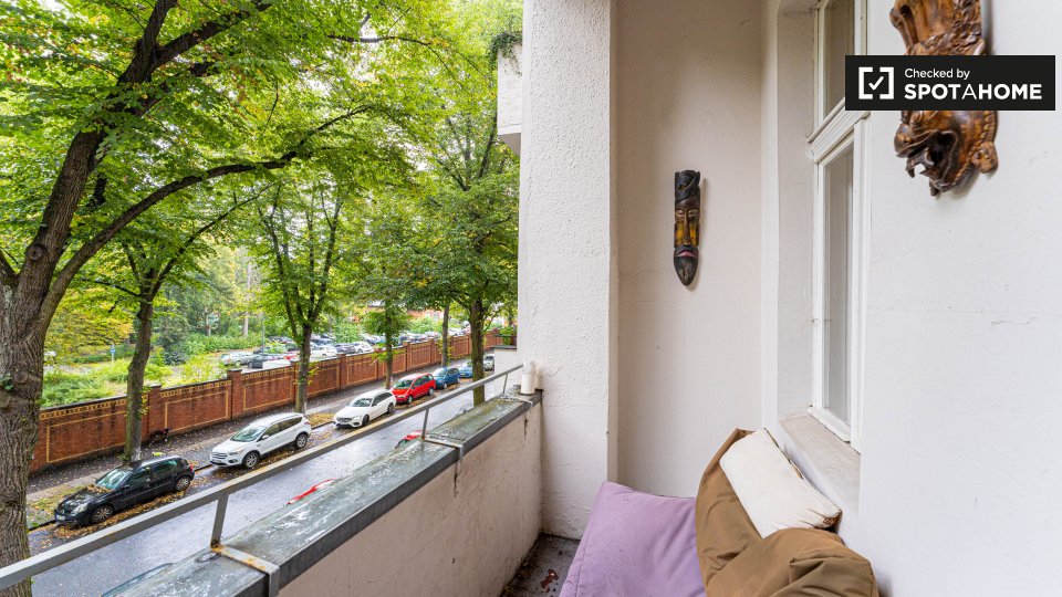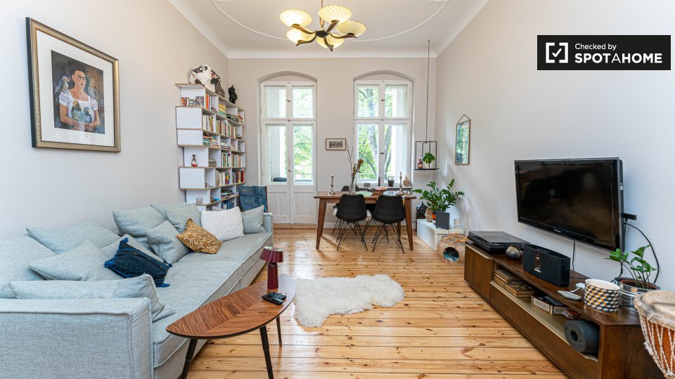 Pets allowedAllowedThis modern 1-bedroom apartment is available for rent on Friedrich-Wilhelm-Straße, Tempelhof-Schöneberg. This 75 m² property offers a fully equipped kitchen and spacious living and dining area, with a sofa and television. There is a covered balcony, and the bathroom is equipped with a bathtub and shower. The bedroom is large and bright, and offers a double bed and plenty of storage.