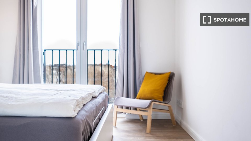 Pets allowedAllowedThis beautifully furnished apartment located in Berlin offers a comfortable living space for various tenant groups including professionals, students, couples, and Erasmus participants. The property comes fully furnished with an equipped kitchen, and includes all utilities such as electricity, gas, water, and WiFi, providing a hassle-free experience. Cleaning services are available for an additional fee. Spotahome has personally checked this property ensuring its quality and trustworthiness.