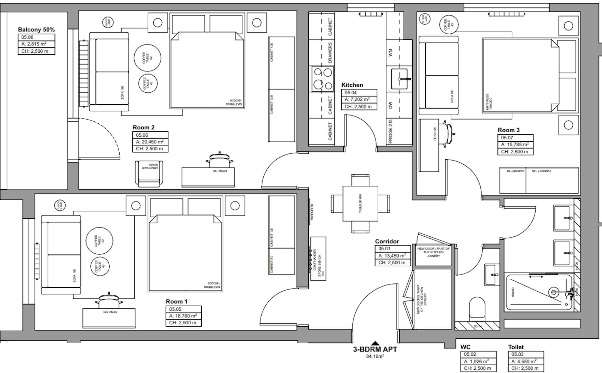 Designed with attention and a cool-vibes-only attitude, our fully furnished apartments range from74-85 sqm 3 bedroom apartments. In this bright, modern h(e)aven, you’ll find a Queen size bed, a fully equipped kitchen, a separate bathroom with a walk-in shower and a study area for when the dedicated student in you awakens. Some come with great views, others with a nice and cosy balcony.