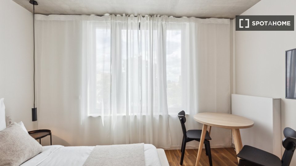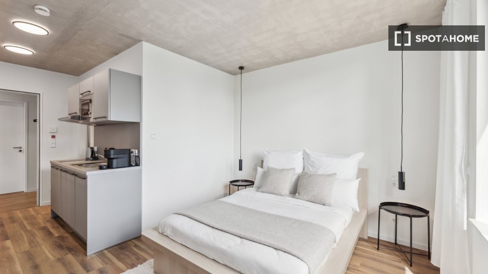 All our studios are fully equipped with everything you need to feel right at home. Enjoy the many amenities at your disposal, including a fully equipped kitchen, a comfortable bed with a premium mattress and bedside tables, an ensuite bathroom, and a versatile area with a table and two chairs, perfect to work or dine. While regular cleaning is not included, it can be booked upon request.Please note, if you are booking as a couple, there will be an additional 200€ charge added to the price of the studio.