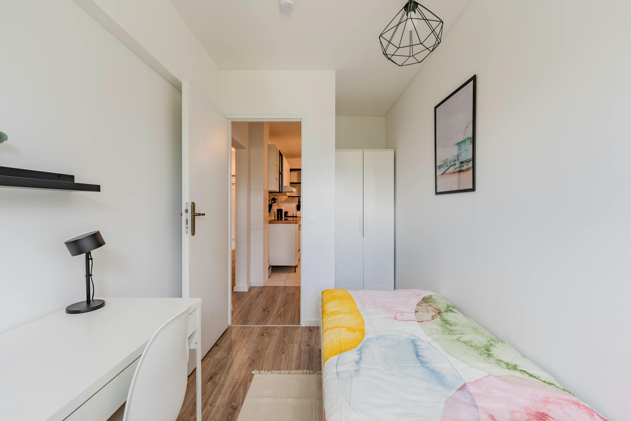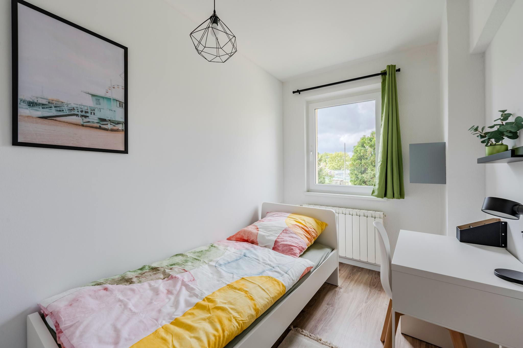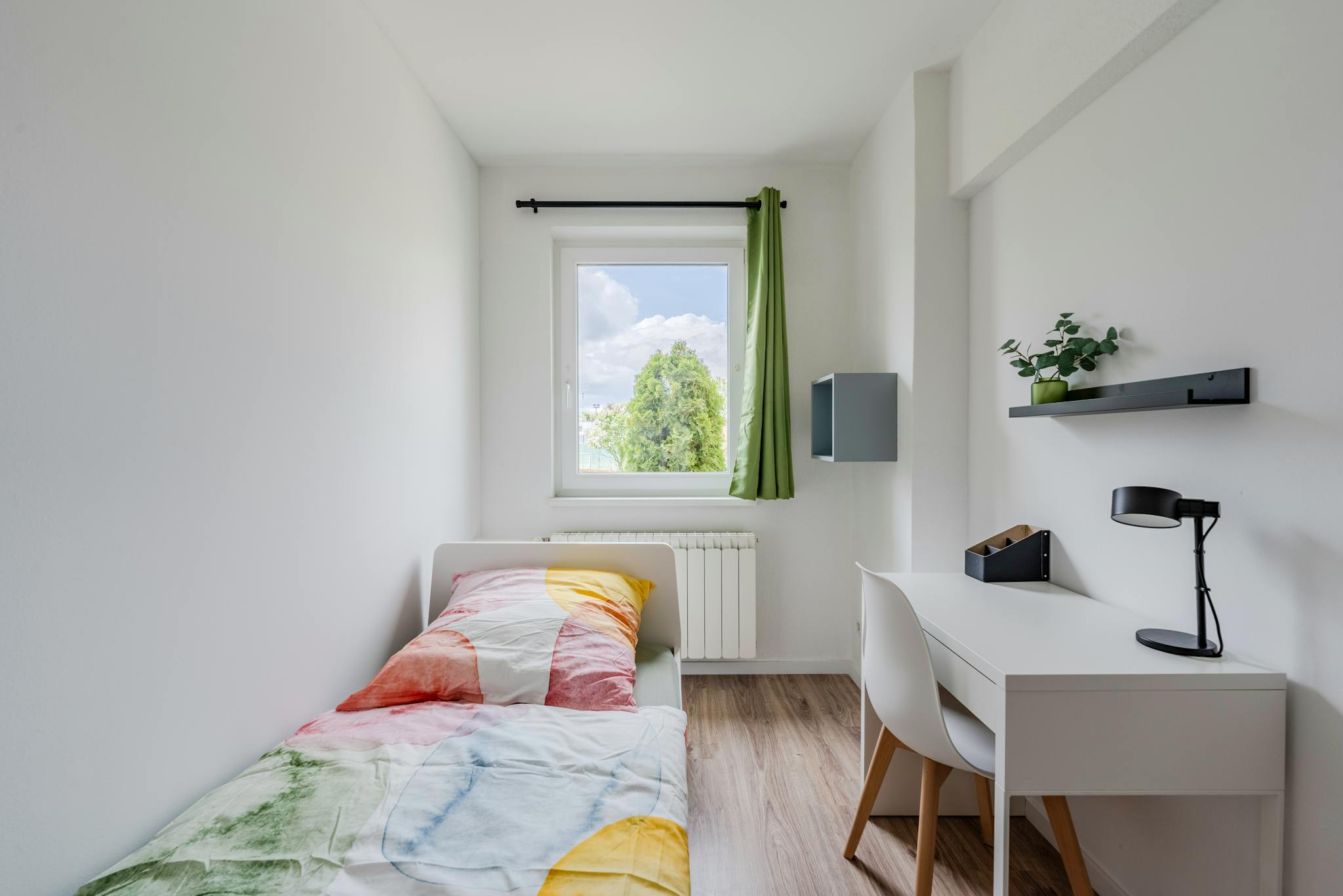 this is a fully furnished room in a shared flat. The room has a comfortable bed, a desk with chair and a wardrobe for your clothes. Also the common areas are fully equipped with washing machine, cooking equipment and all you need for your daily living.